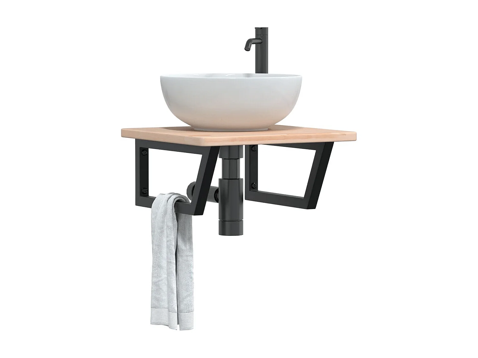 Meuble sous vasque murale acier et bois massif de hêtre FR445773
