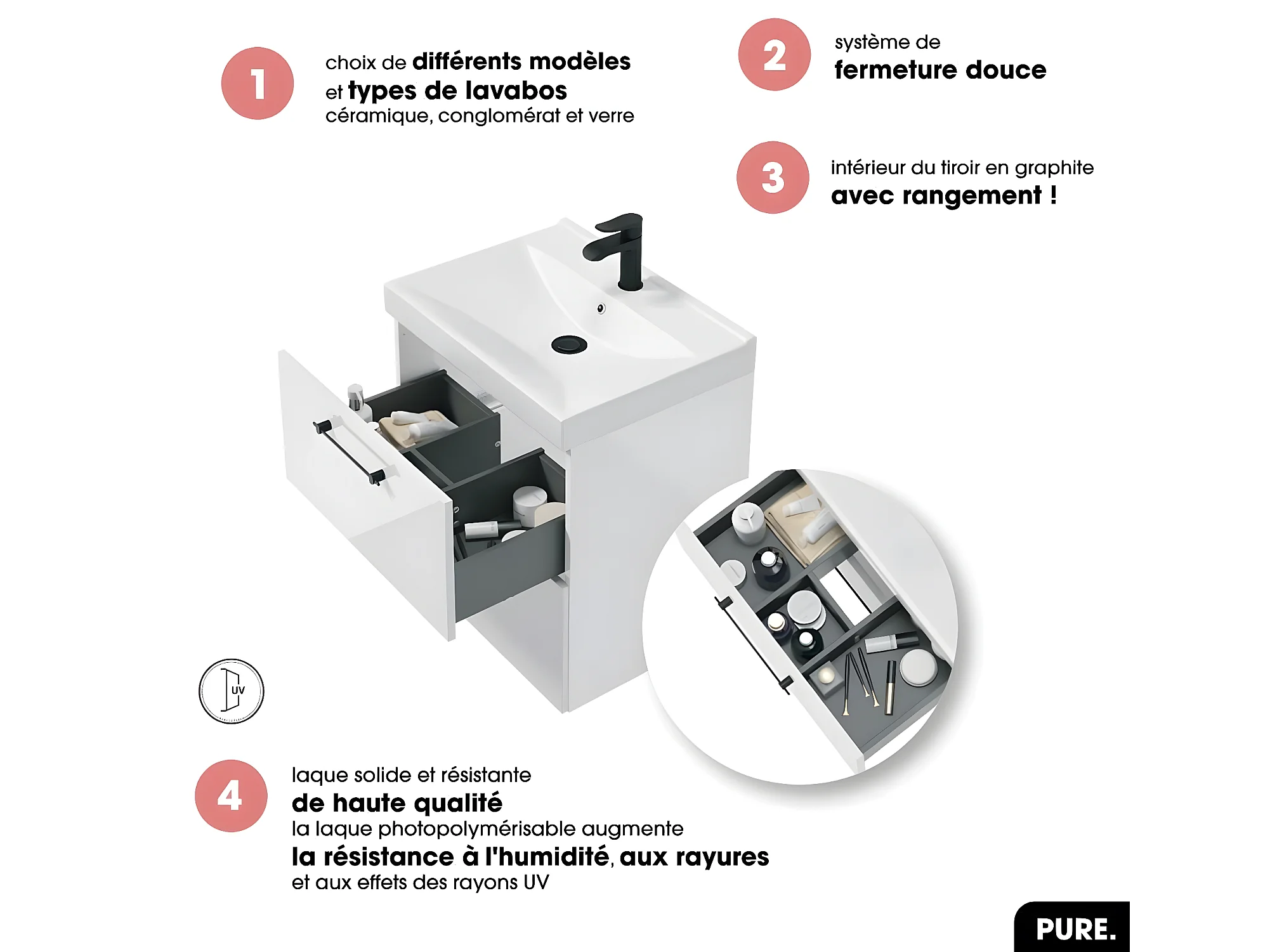 Meuble sous vasque | PURE | Blanc | 60 × 60 × 45