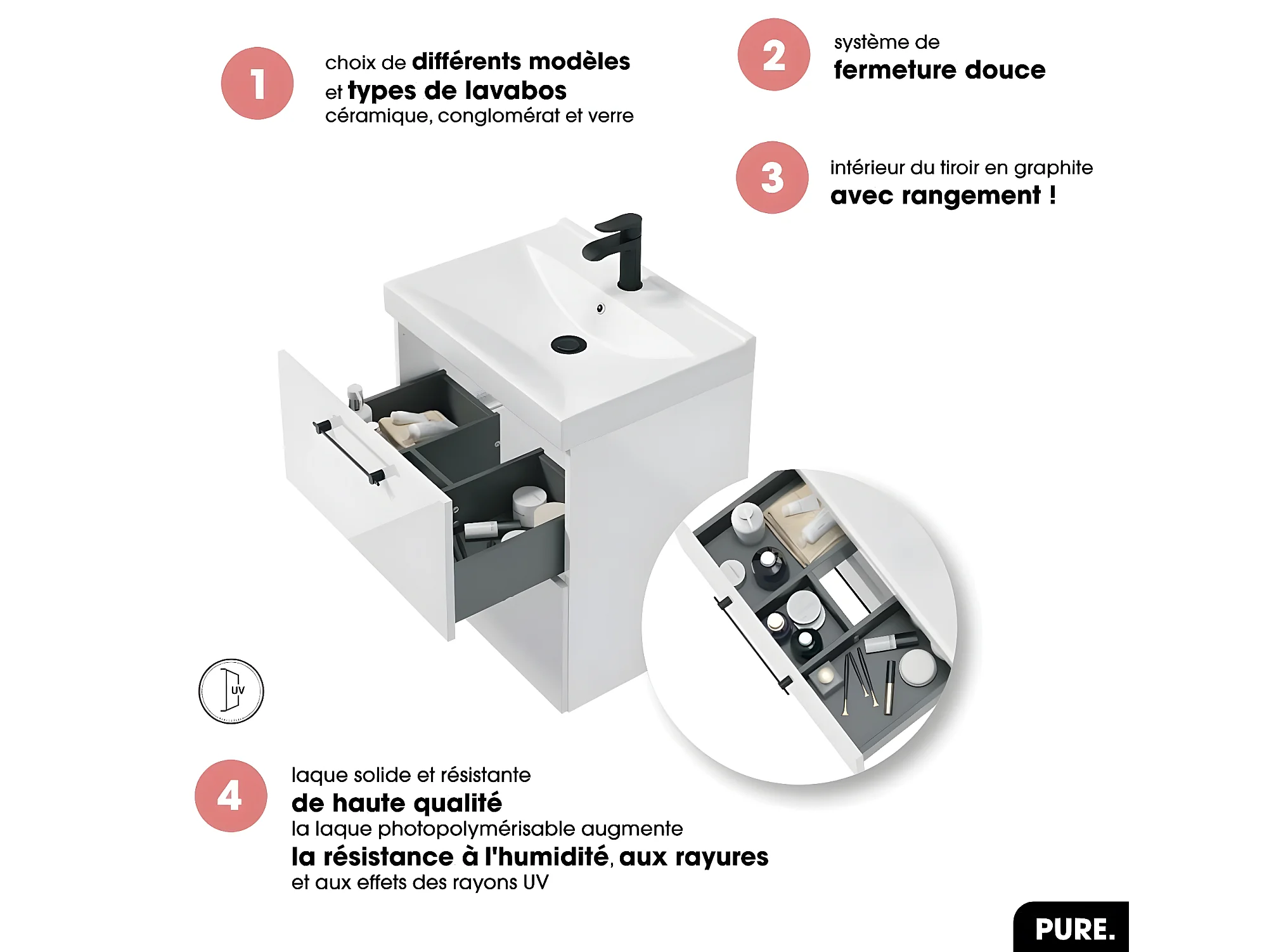 Meuble sous vasque | PURE | Blanc | 80 × 60 × 45