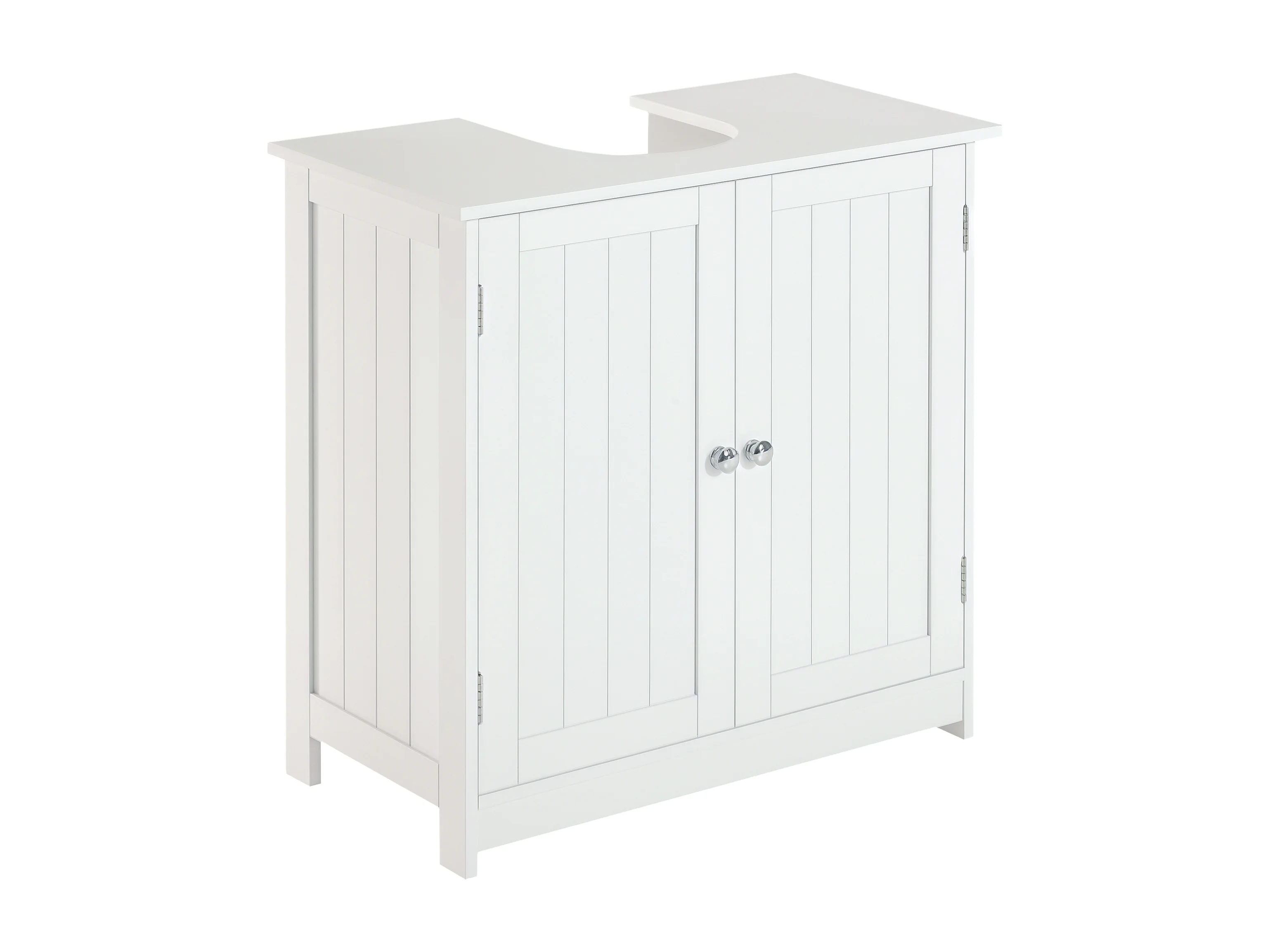 Meuble vasque - meuble sous-vasque - 2 portes rainurées avec étagère réglable - poignées métal chromé - dim. 60L x 30l x 60H cm - MDF blanc