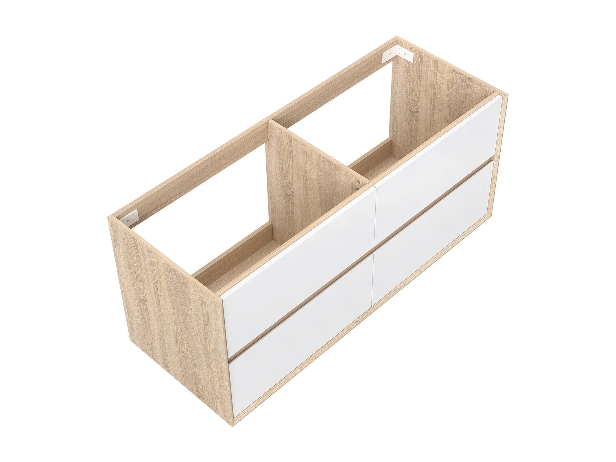 Meuble sous vasque suspendu 120 cm + 4 tiroirs, Blanc et Chêne, sans compter lavabo