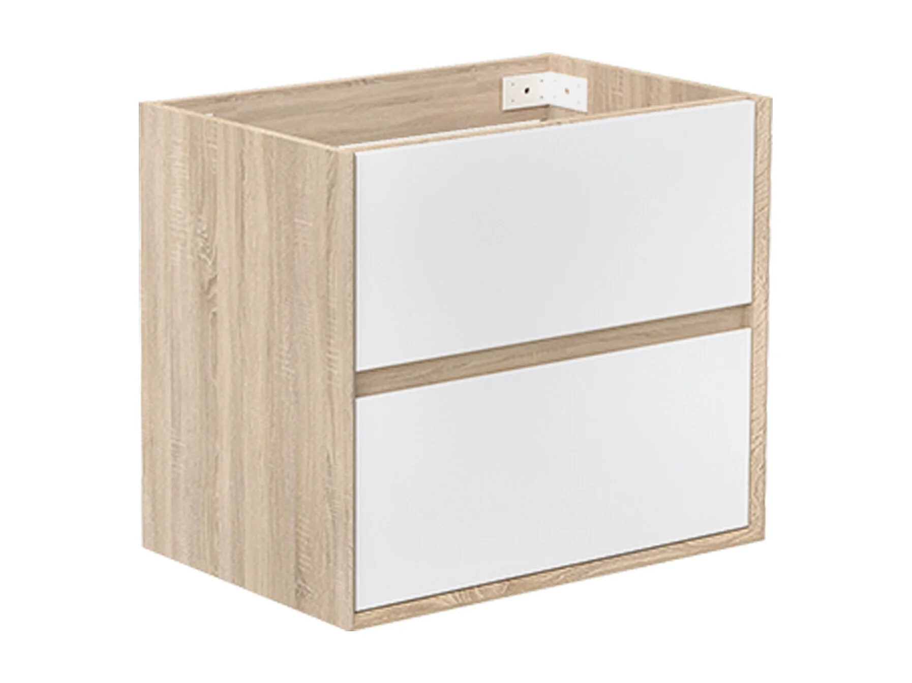 Meuble sous vasque suspendu 60 cm + 2 tiroirs, Blanc et Chêne, sans compter lavabo