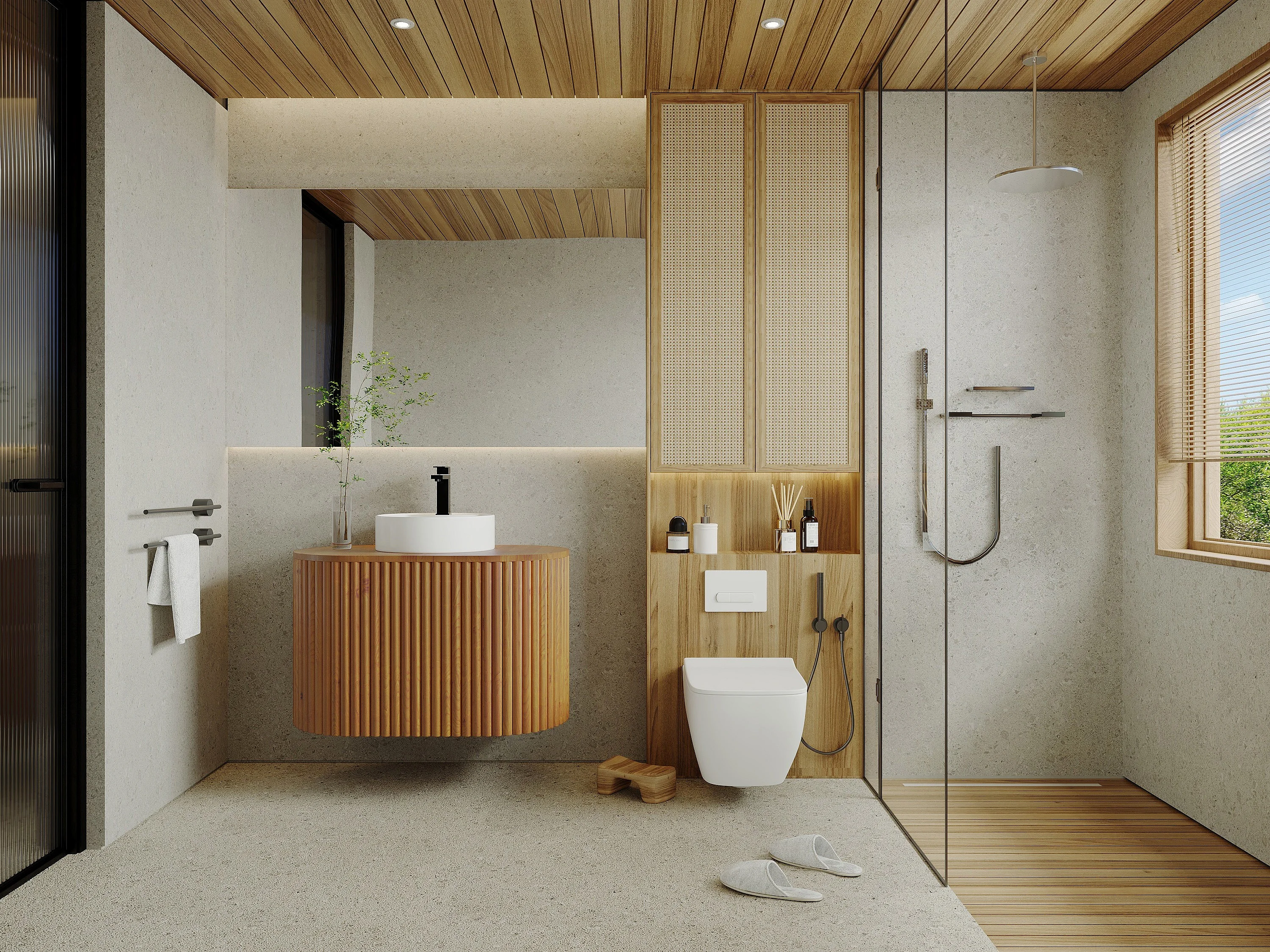 Meuble sous vasque suspendu en teck - 90 cm - TOWARI