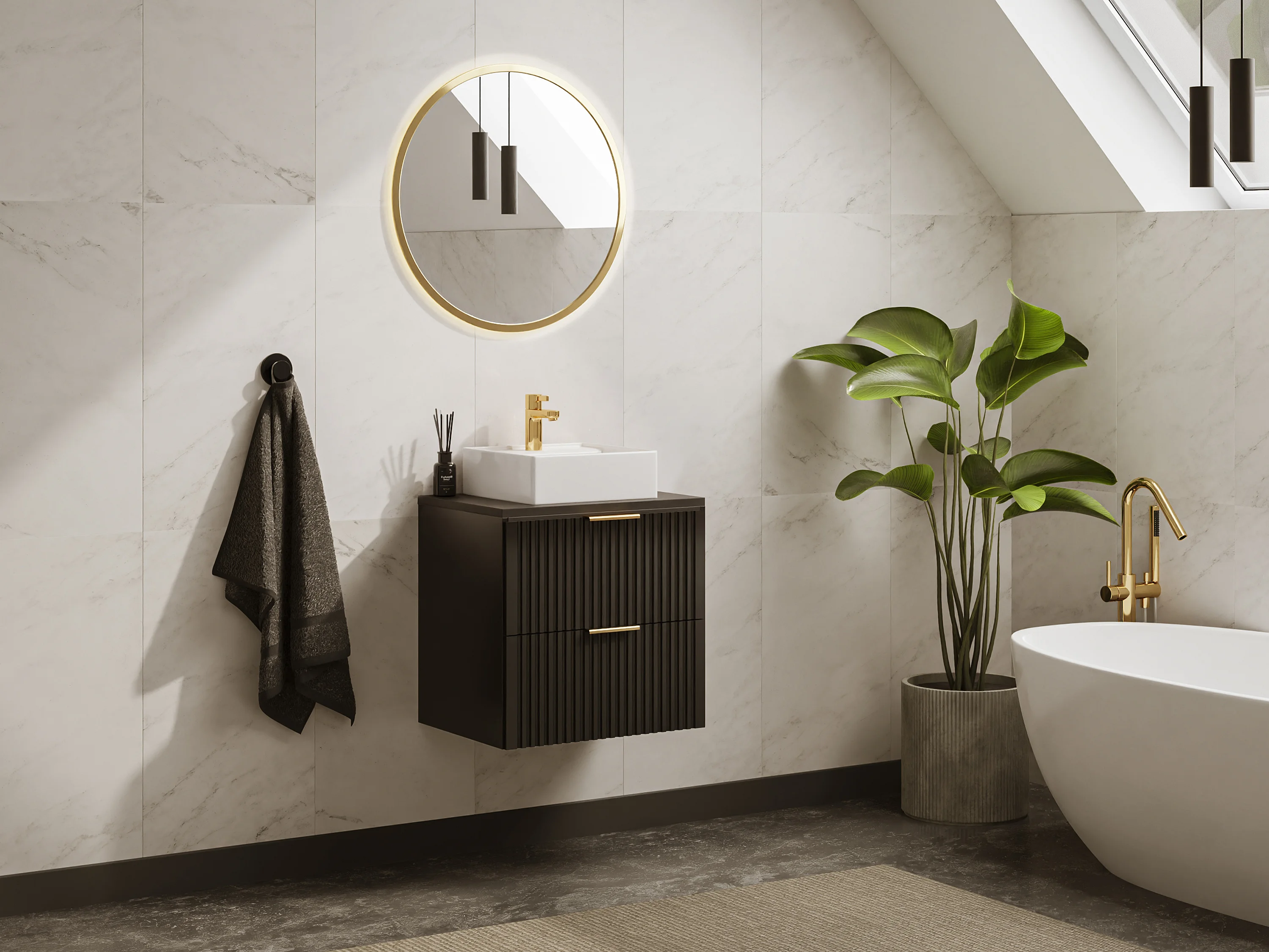 Meuble sous vasque suspendu strié - Noir - L60 cm - ZEVARA
