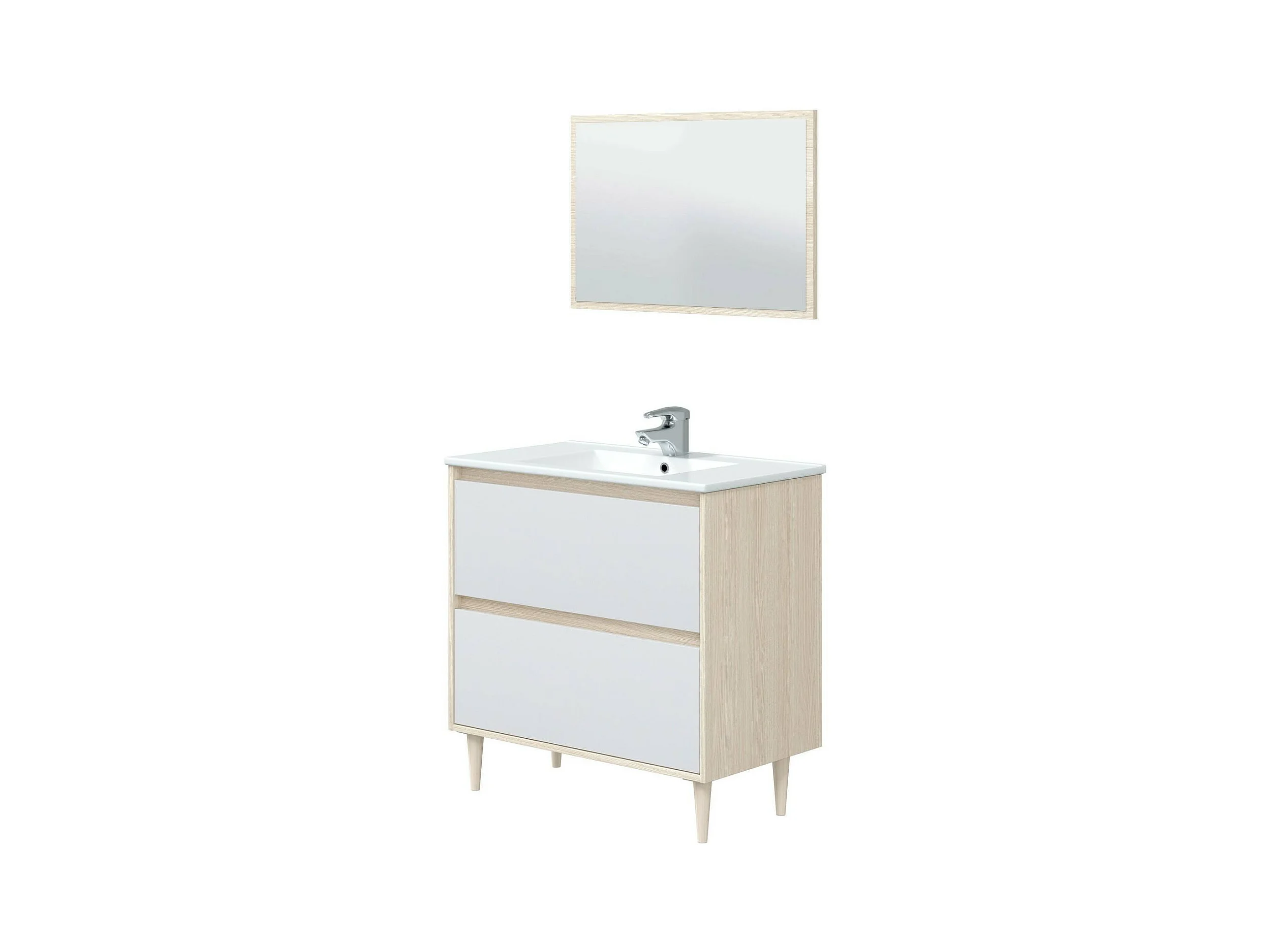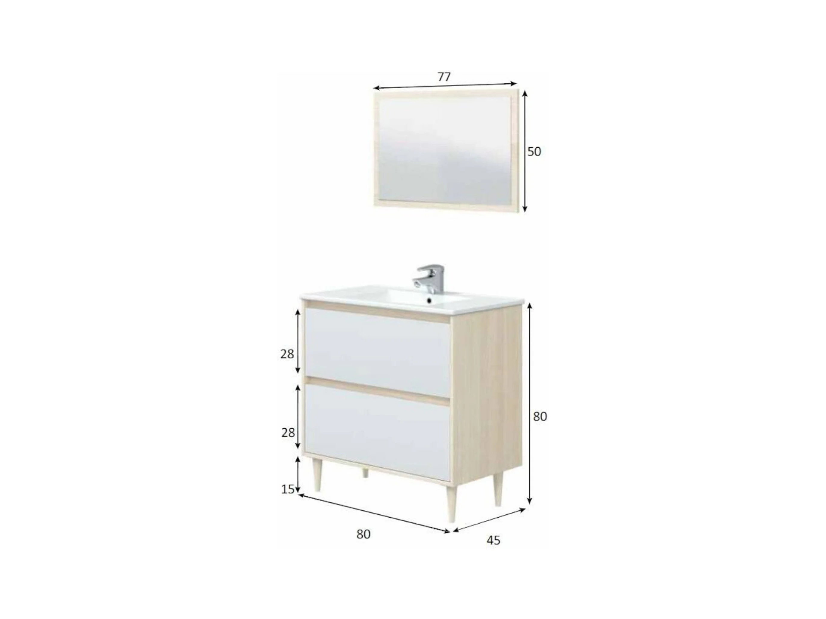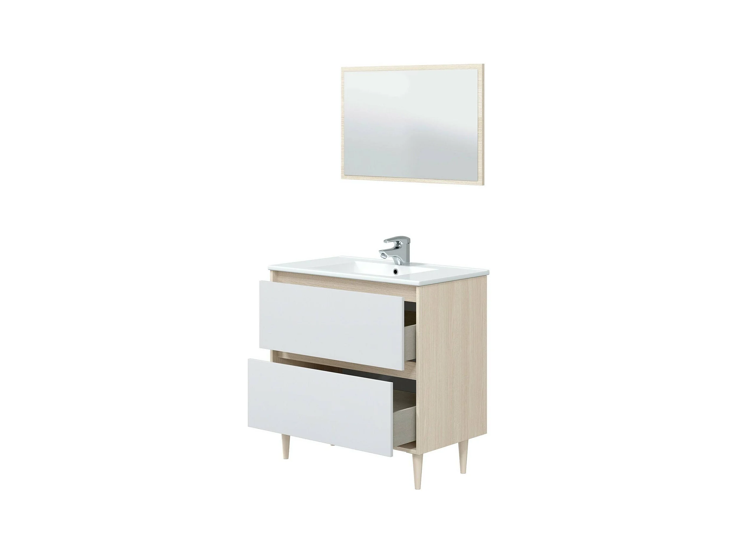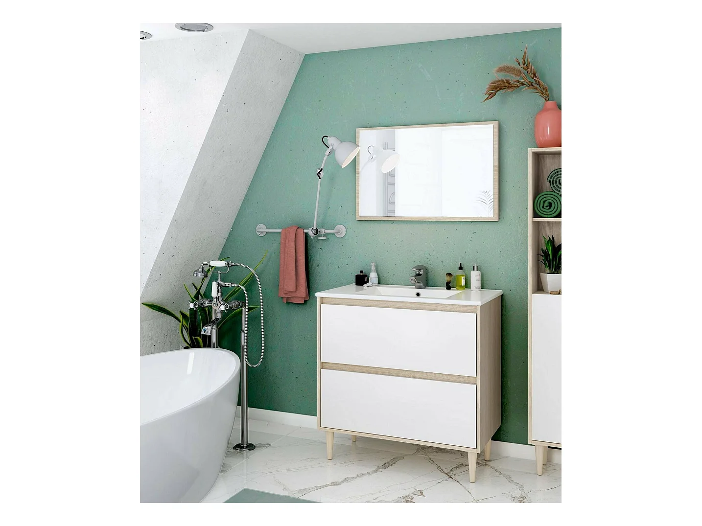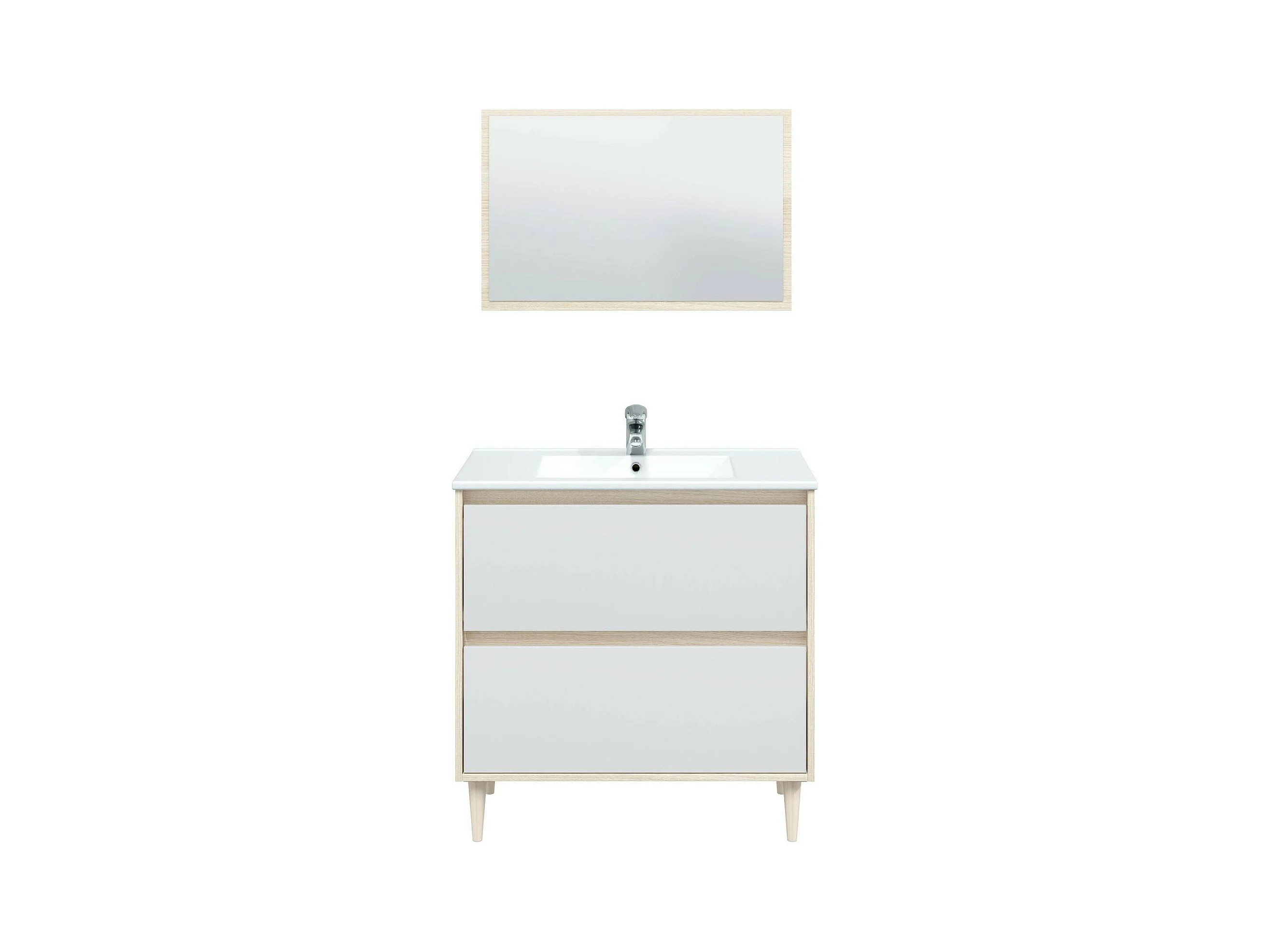 Meuble sous-vasque Yazoo, Meuble sous-vasque de salle de bain, Meuble sous-vasque avec miroir, Lavabo non inclus, 80x45h80 cm, Blanc brillant et chêne