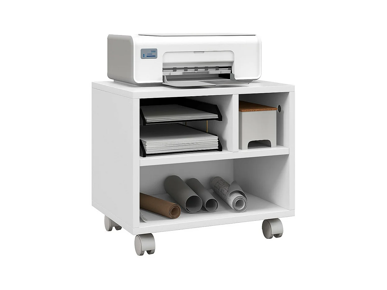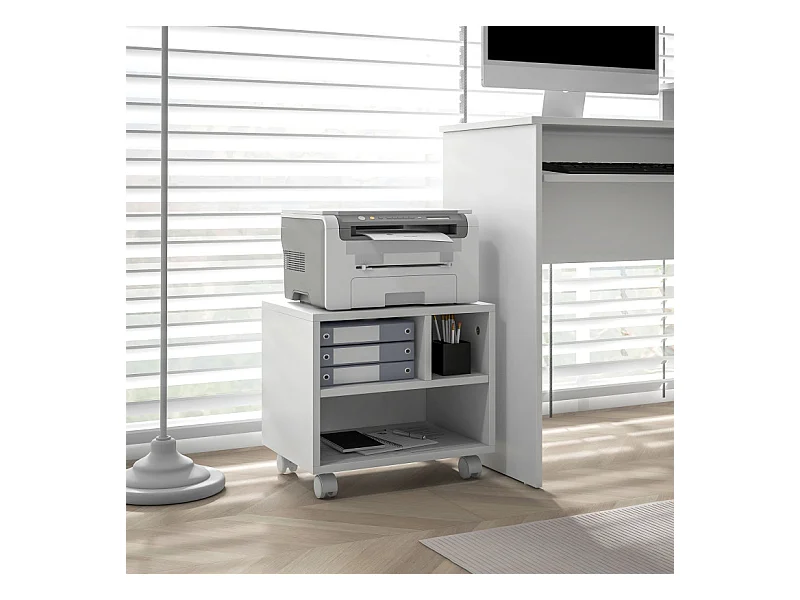 Caisson blanc à roulettes MELTO – 2 tiroirs et 1 niche – Rangement compact et mobile