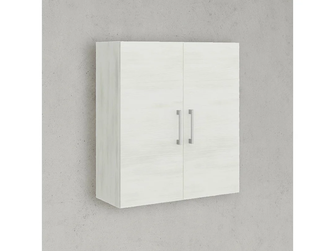 Meuble Suspendu De Salle De Bains 2 Portes Chêne Blanc Et Poignées Chromées | Rimini
