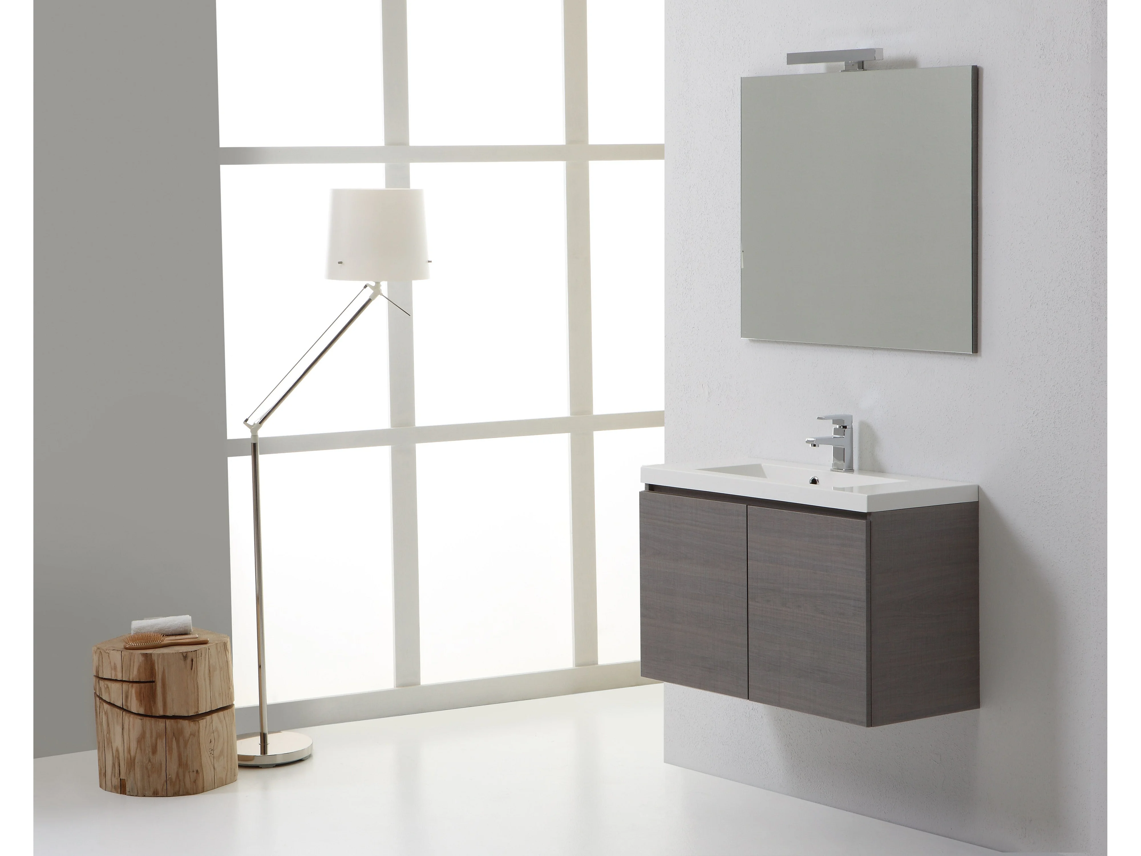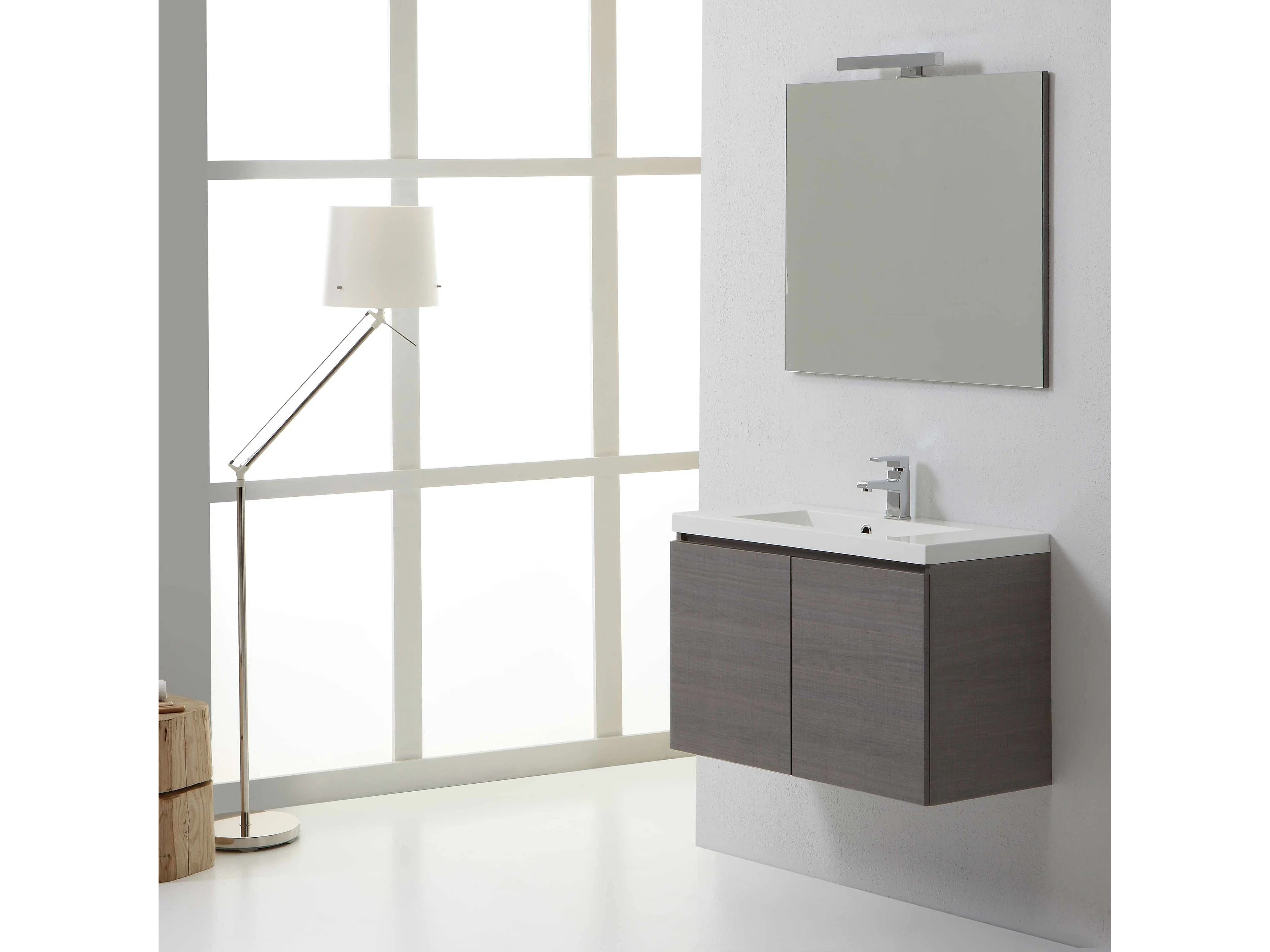 Meuble Suspendu Salle De Bains 80 Cm Gris Avec Lavabo | Manhattan