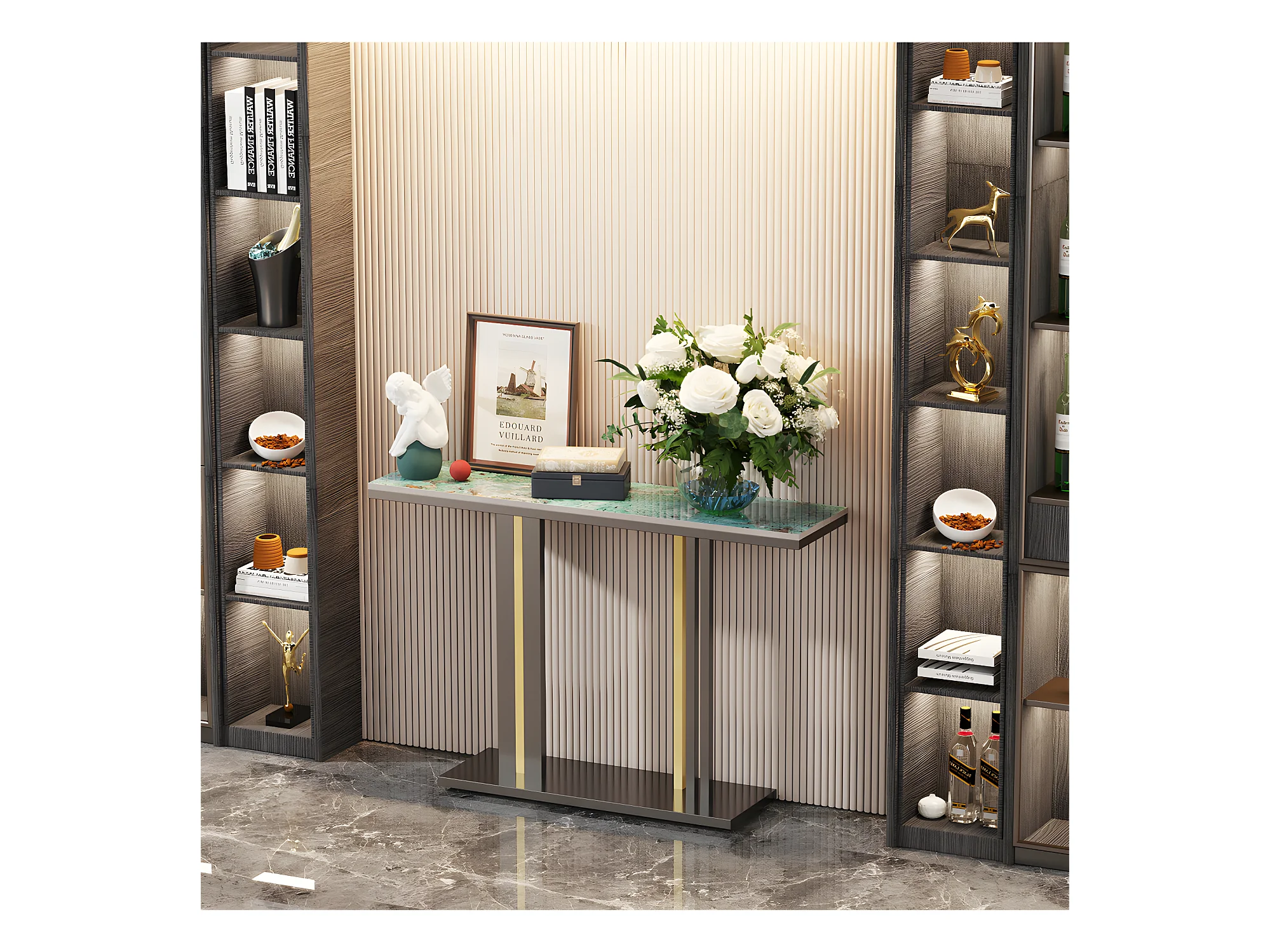 Meuble table console marbre bout de canapé pour salon entrée 118x30x78cm