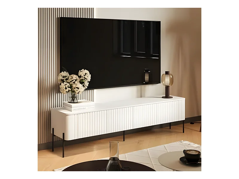 Meuble télé blanc 190 cm, 4 portes Hector
