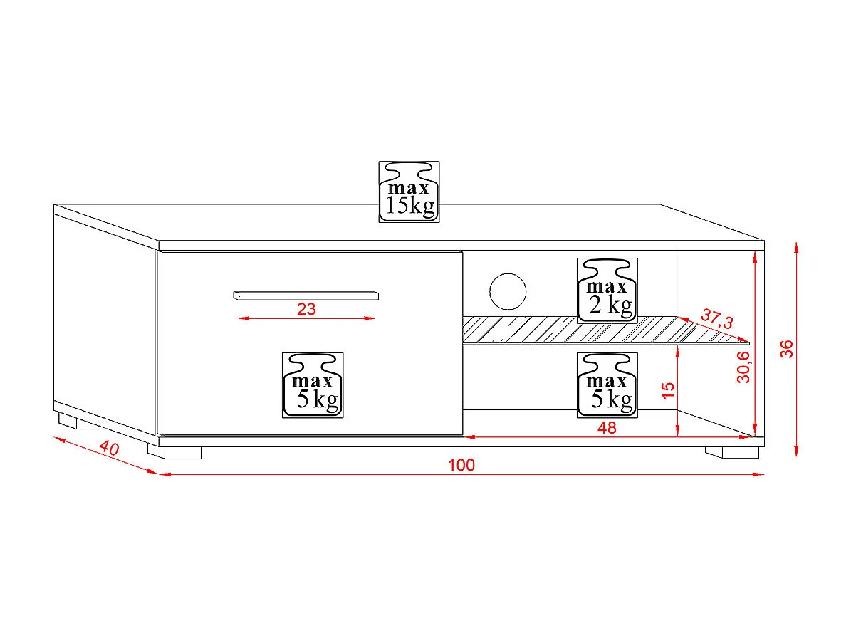 Meuble TV 1 porte 100 cm avec LED Aitana Blanc et Gris