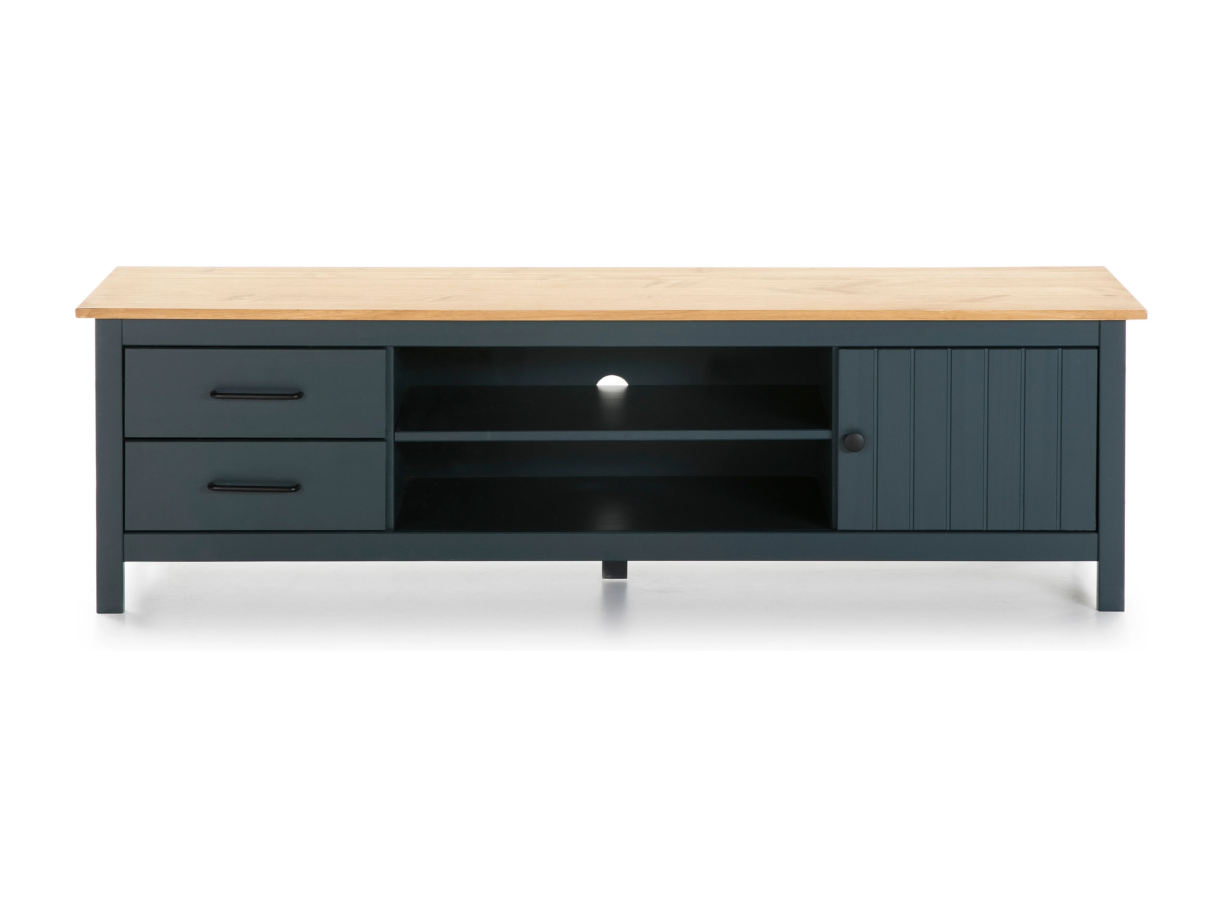 Meuble TV 1 porte 2 tiroirs en bois massif bleu 158 cm - Ida