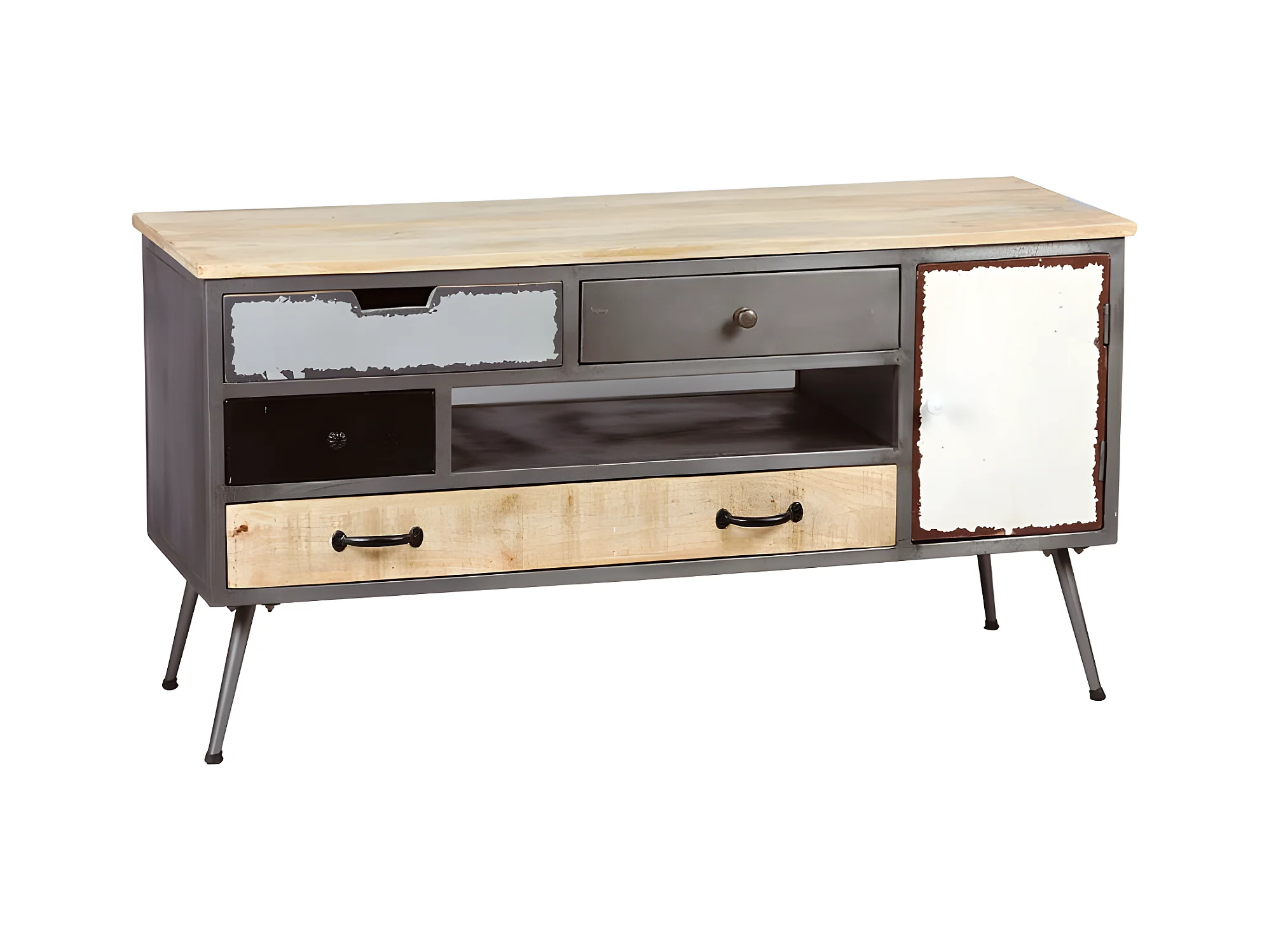Meuble TV 1 porte 4 tiroirs Bois/Métal - PYPLUS - L 120 x l 42 x H 62 cm