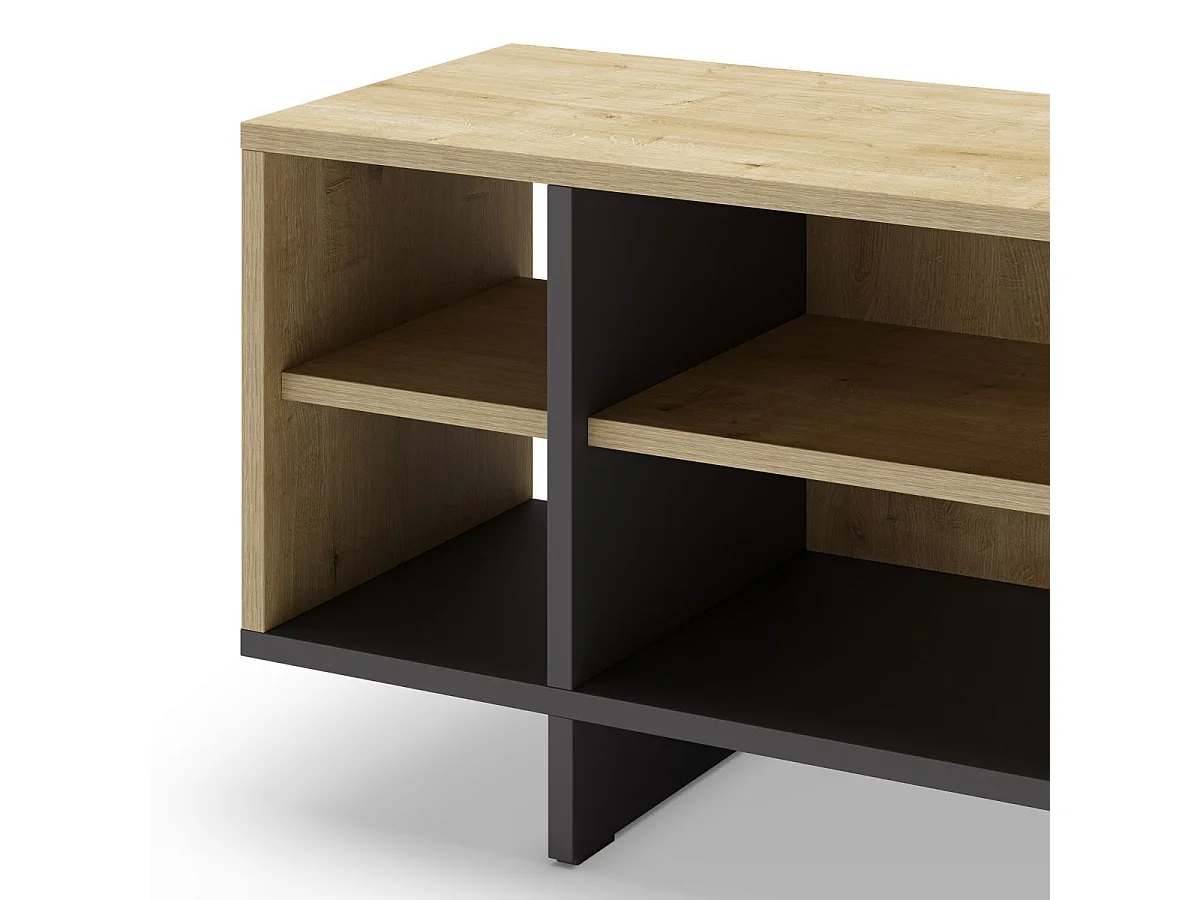 Meuble TV 1 portes 4 niches en mélaminé imitation bois et noir - ESQUISSE
