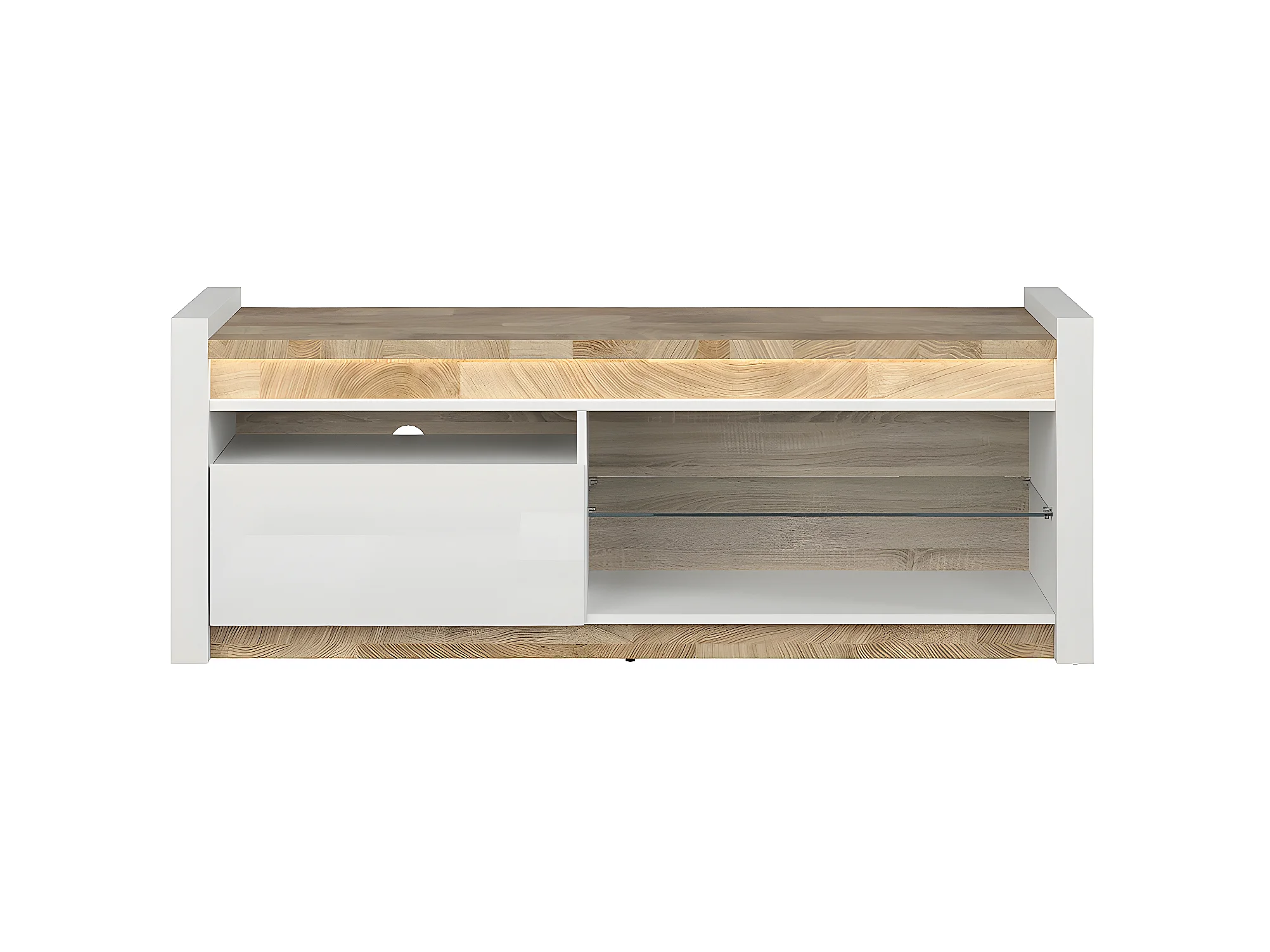 Meuble TV 1 tiroir 147 cm avec LED Helios Blanc laqué et Bois
