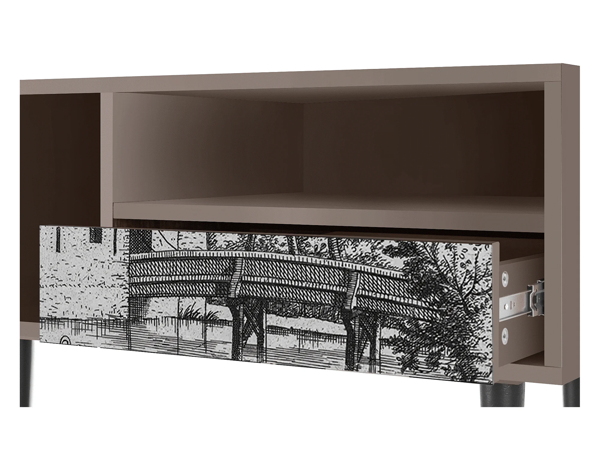 Meuble TV - 115х59х48 cm - T3 - Castle with Bridge, Latte