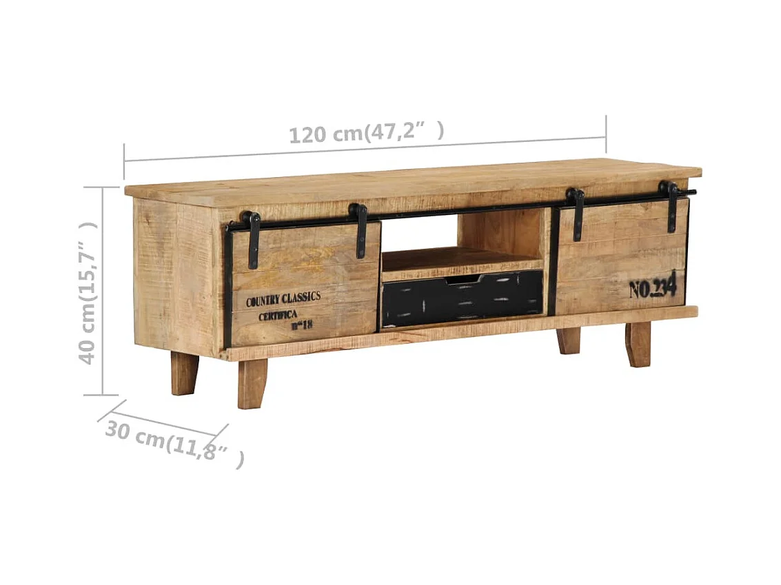 Meuble TV 120x30x40 cm Bois massif de manguier