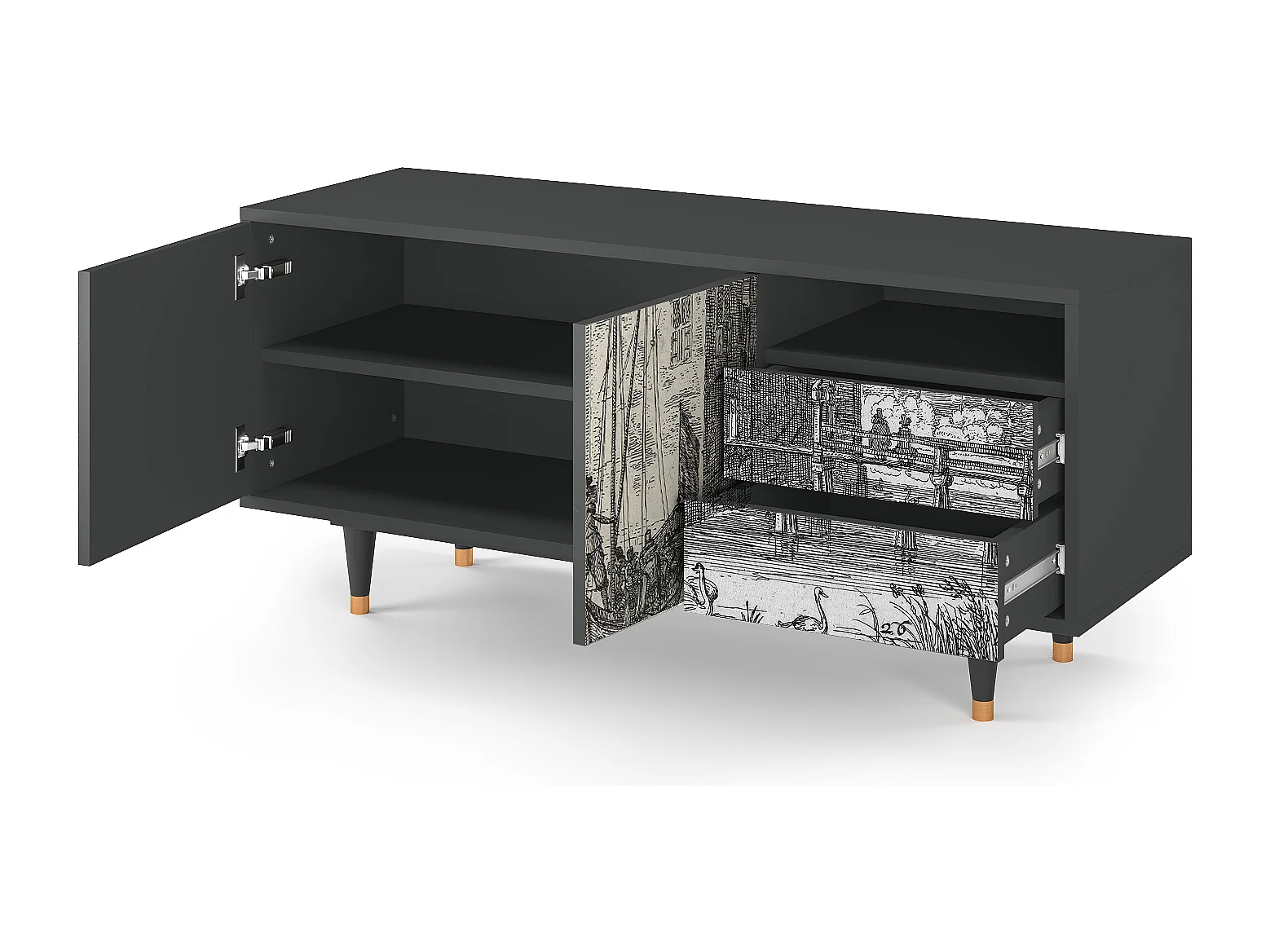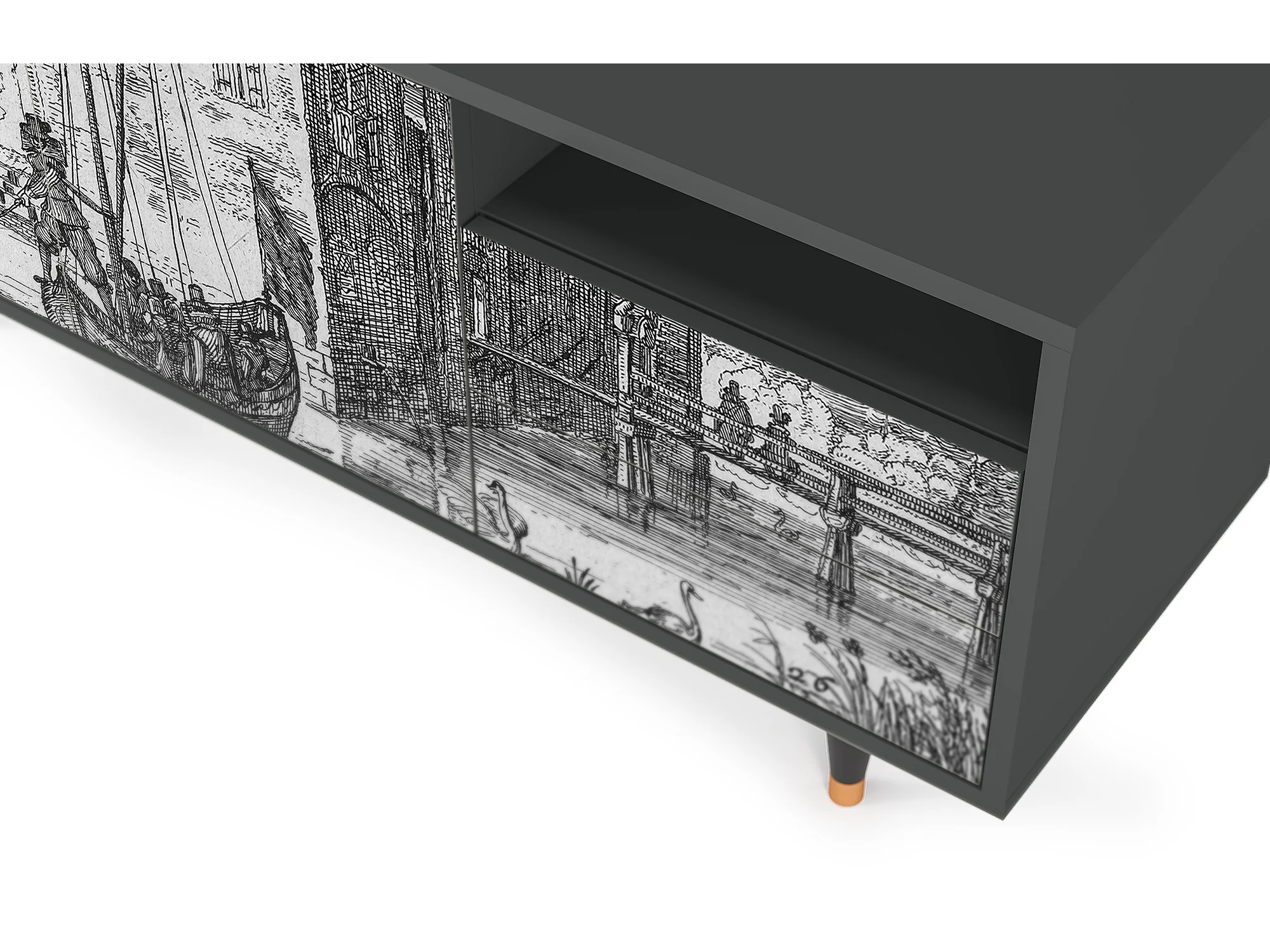 Meuble TV - 125х56х41 cm - T7 - Castle with Bridge, Anthracite