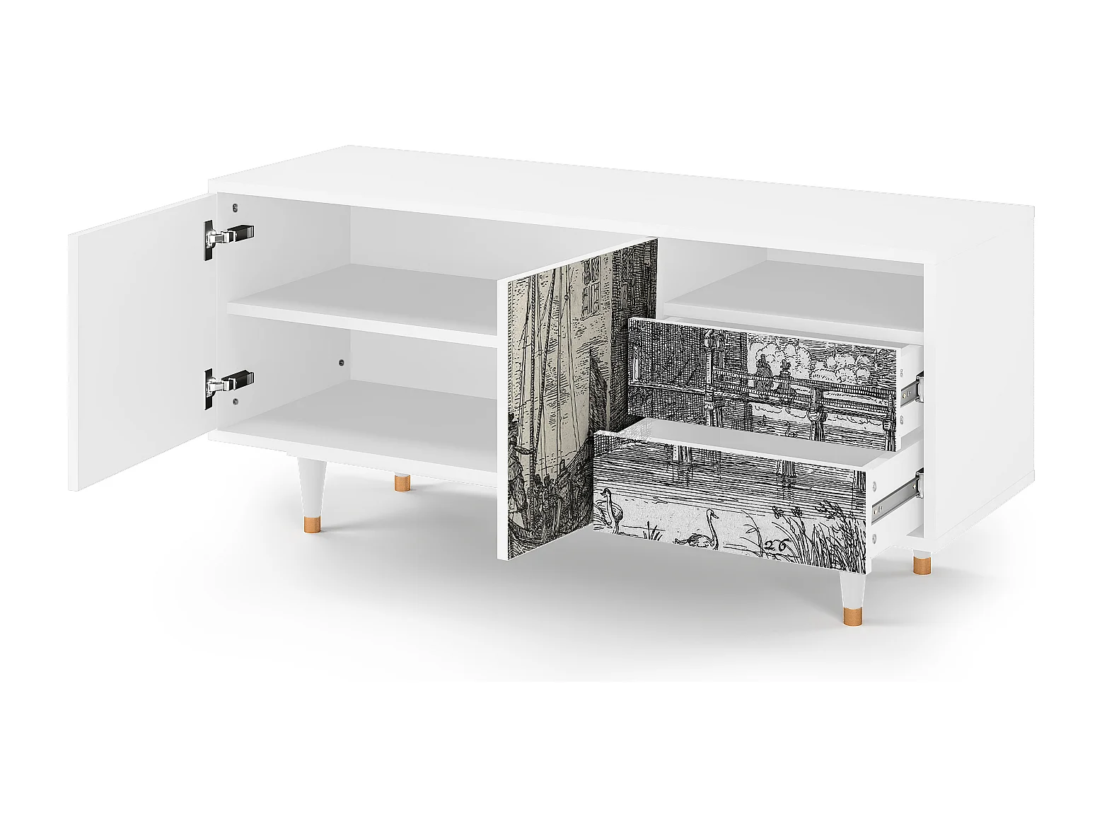Meuble TV - 125х56х41 cm - T7 - Castle with Bridge, Blanc