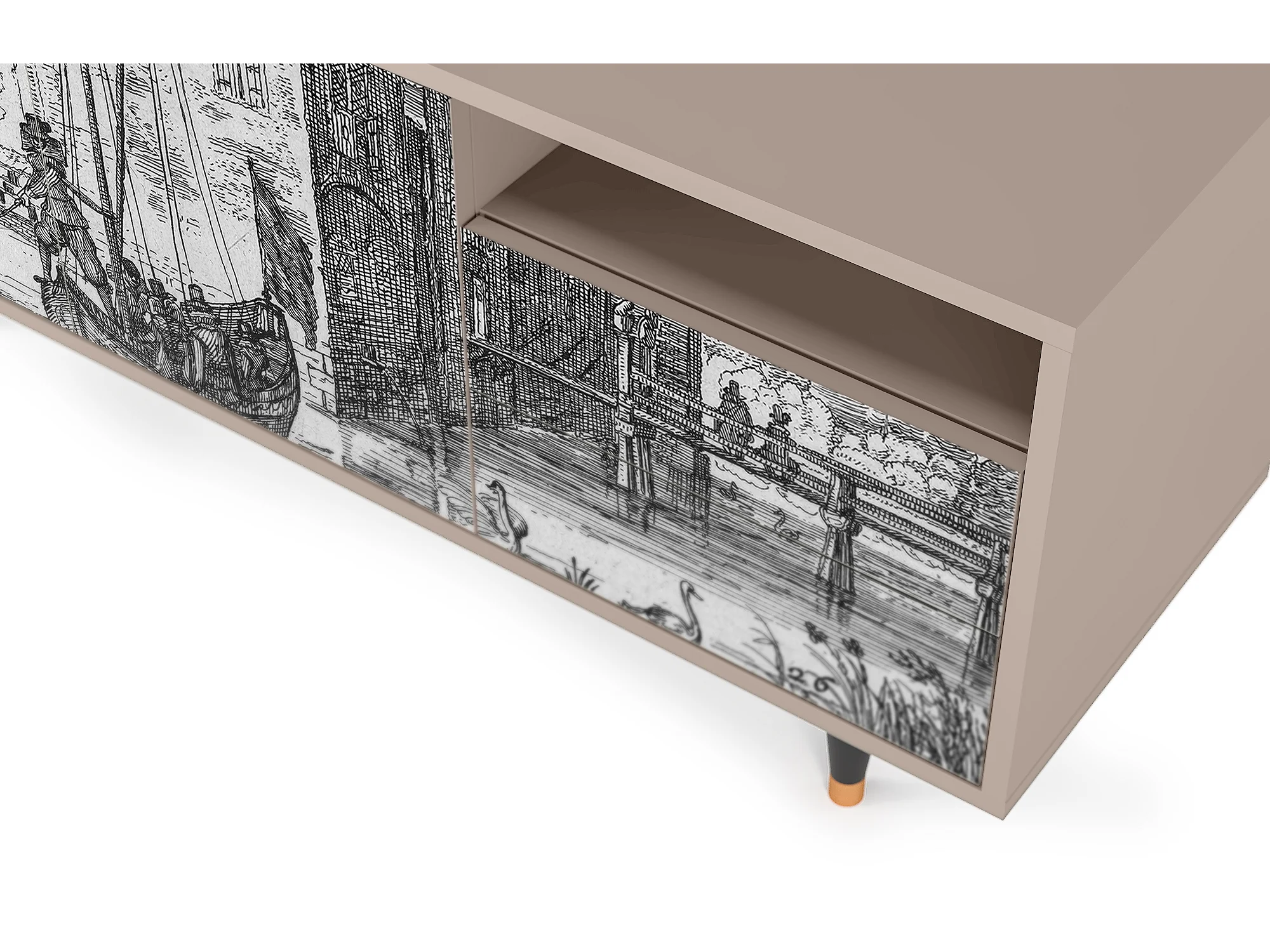 Meuble TV - 125х56х41 cm - T7 - Castle with Bridge, Latte