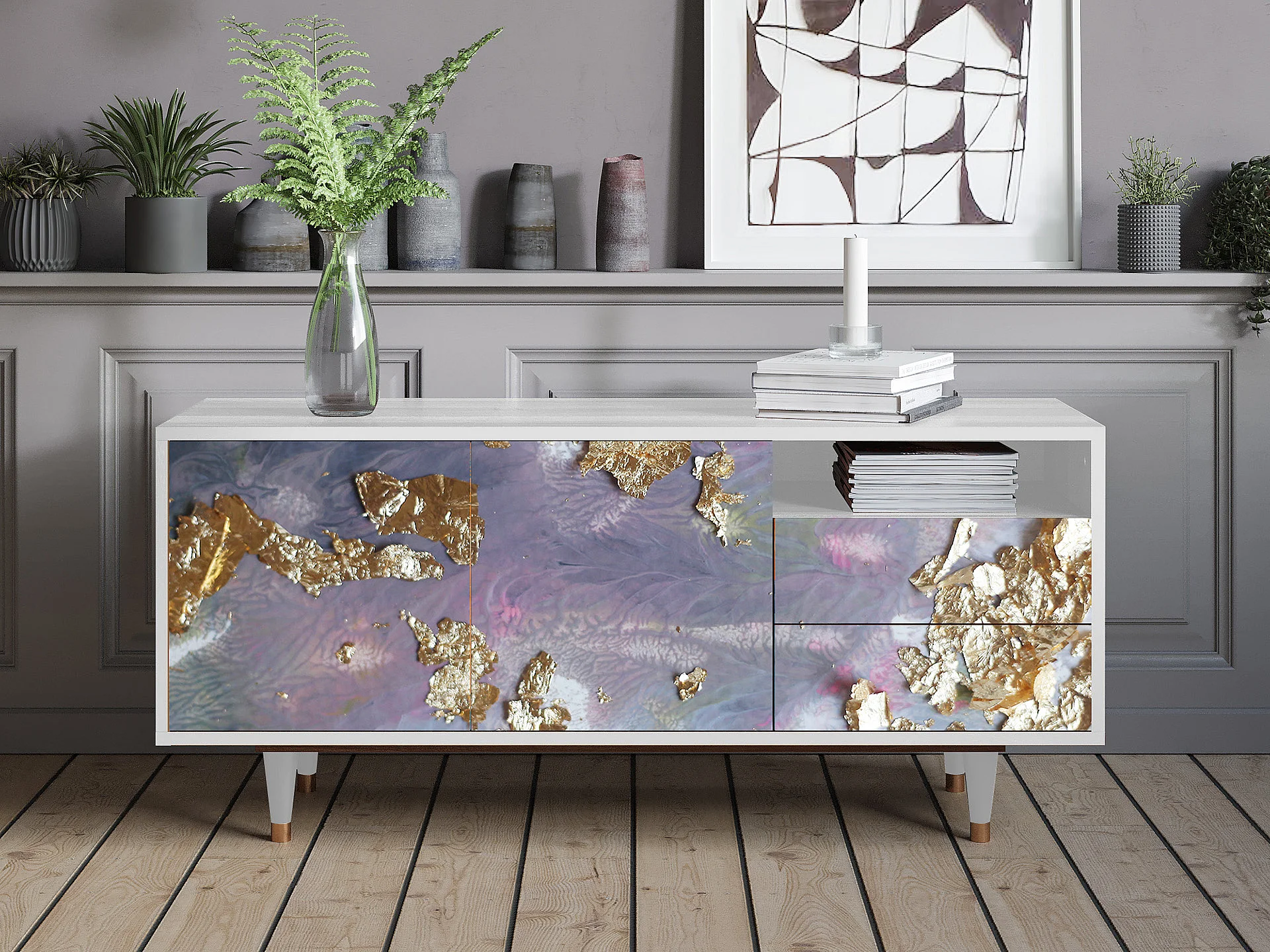 Meuble TV - 125х56х41 cm - T7 - Planet Earth, Blanc