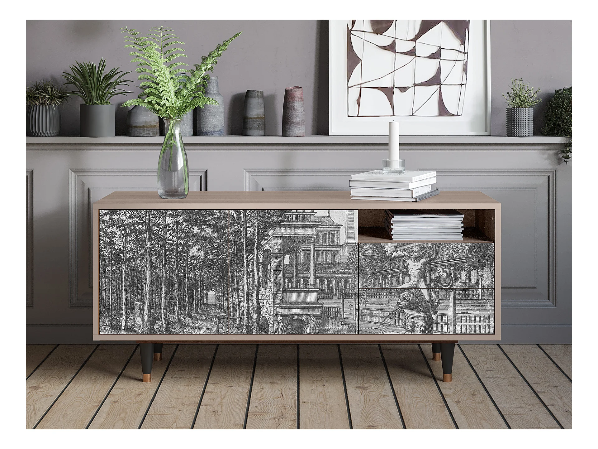 Meuble TV - 125х56х41 cm - T7 - View of the Piazza, Latte