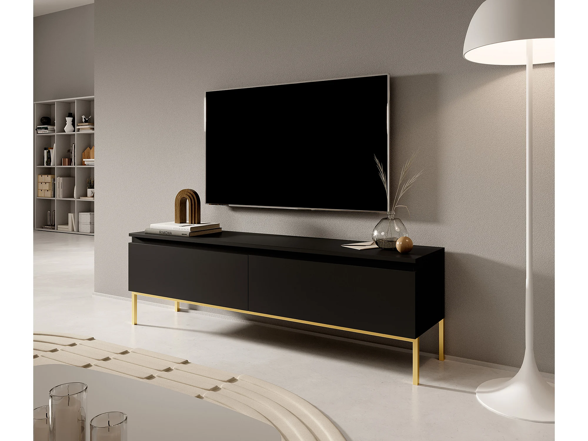 Meuble TV - 150 cm - noir avec pieds dorés - BEMMI