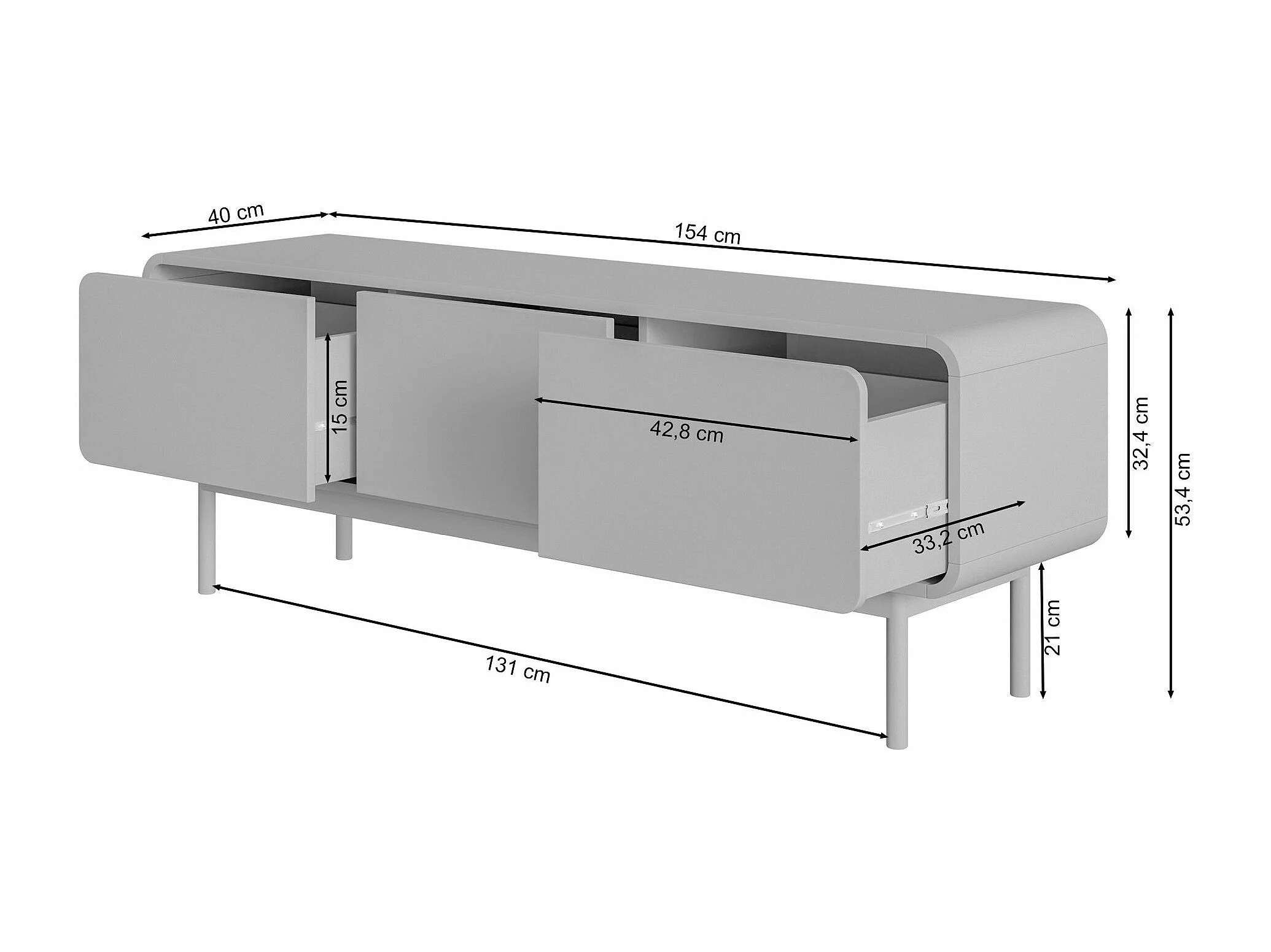 Meuble TV - 154 cm - avec trois tiroirs - debout - noir - ORO