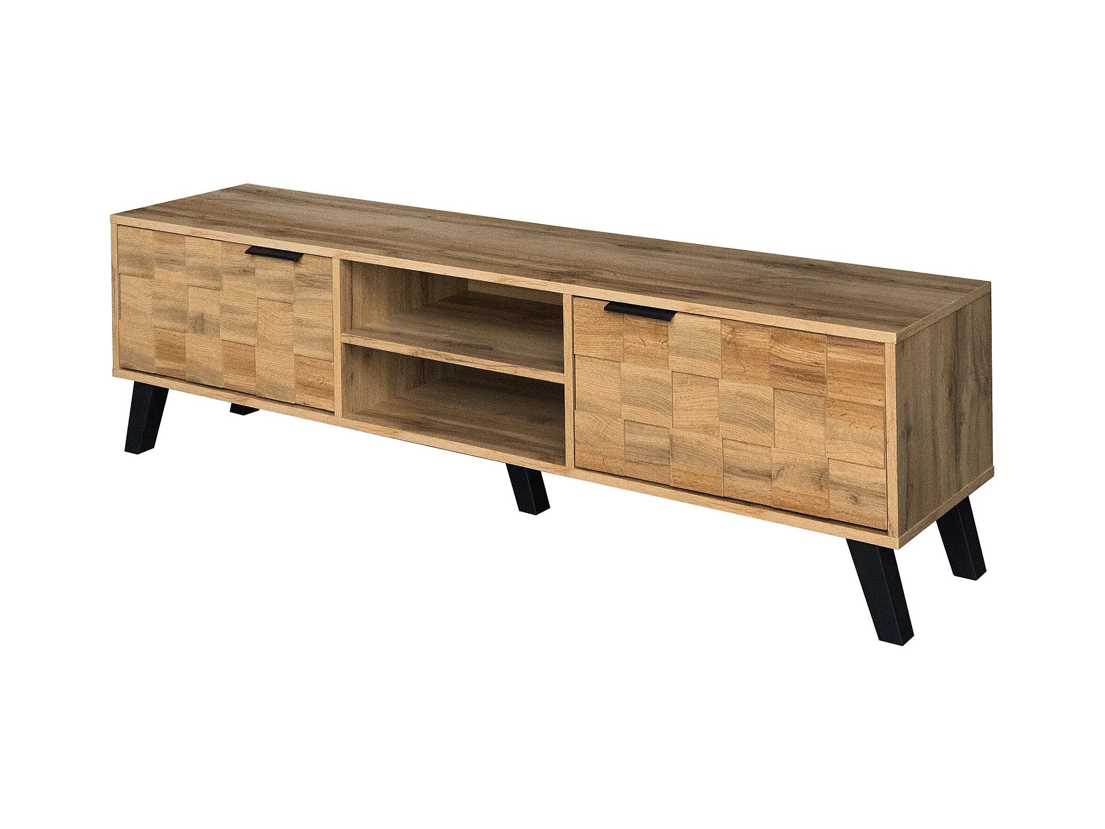 Meuble TV 160.5x35.5x45 cm avec deux portes et deux compartiments ouverts panneaux de particules en Couleur naturelle