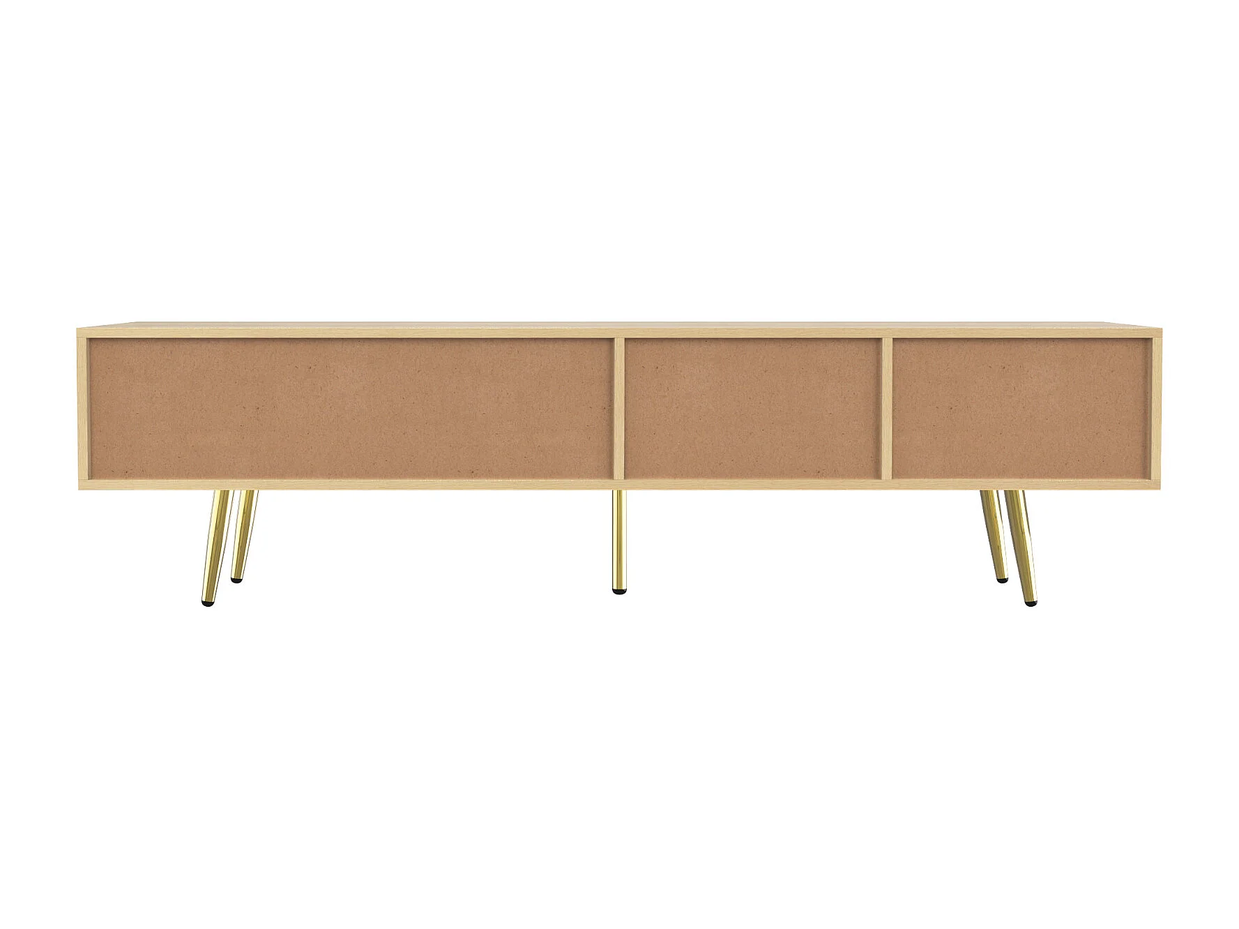 Meuble TV 160 cm avec pieds dorés - Meuble TV moderne avec 2 tiroirs et 2 portes - Couleur bois