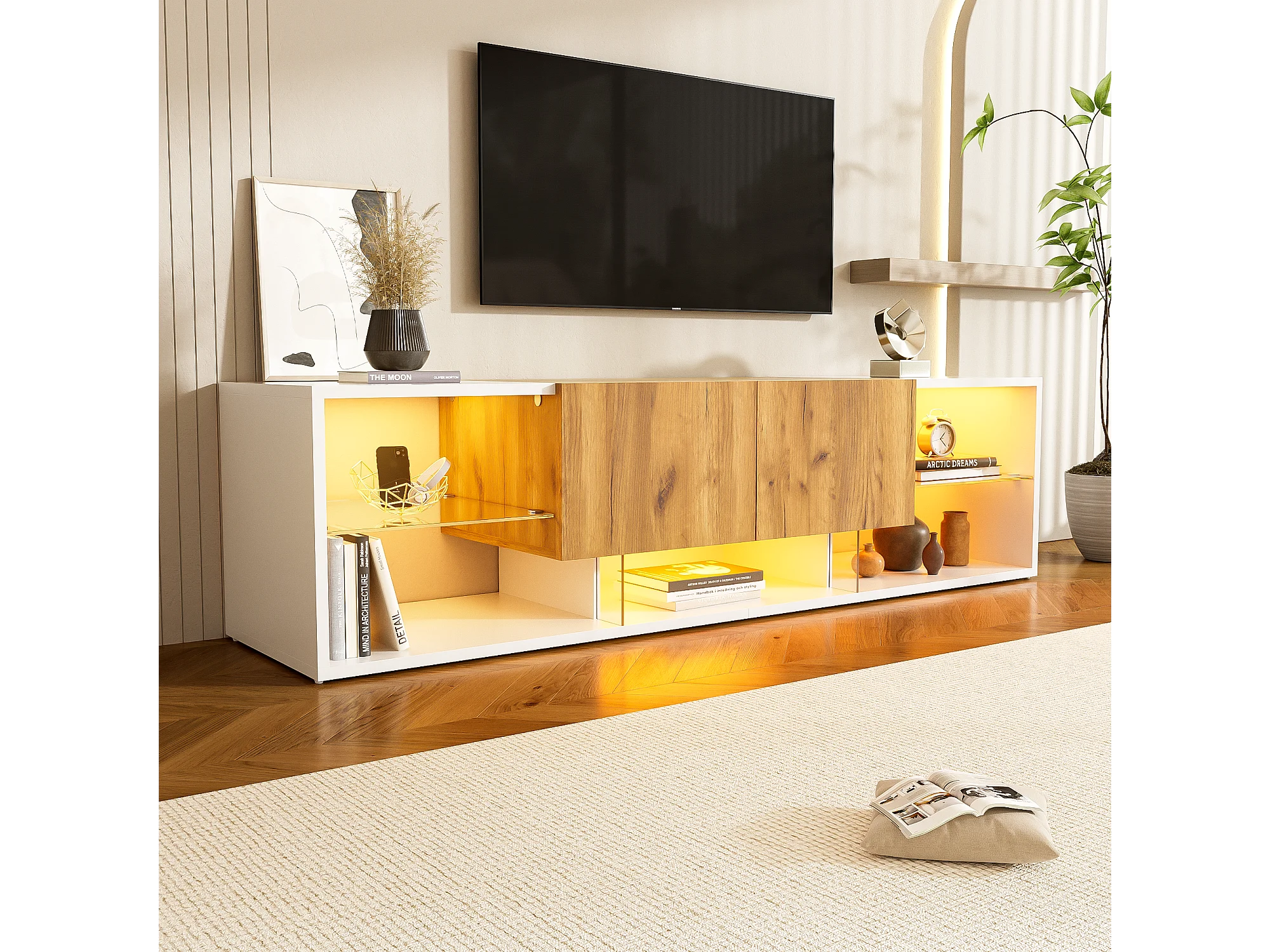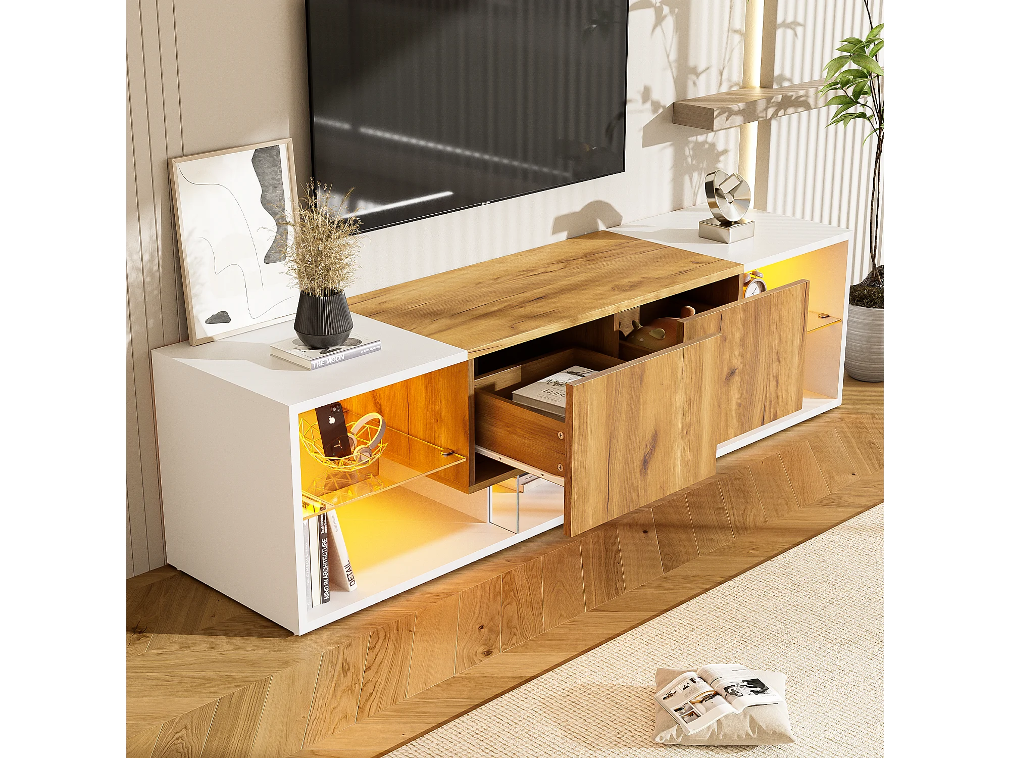Meuble TV 160 x 40 x 42 cm, Console TV Moderne avec Plateau de Rangement en Verre et 2 tiroirs,Blanc