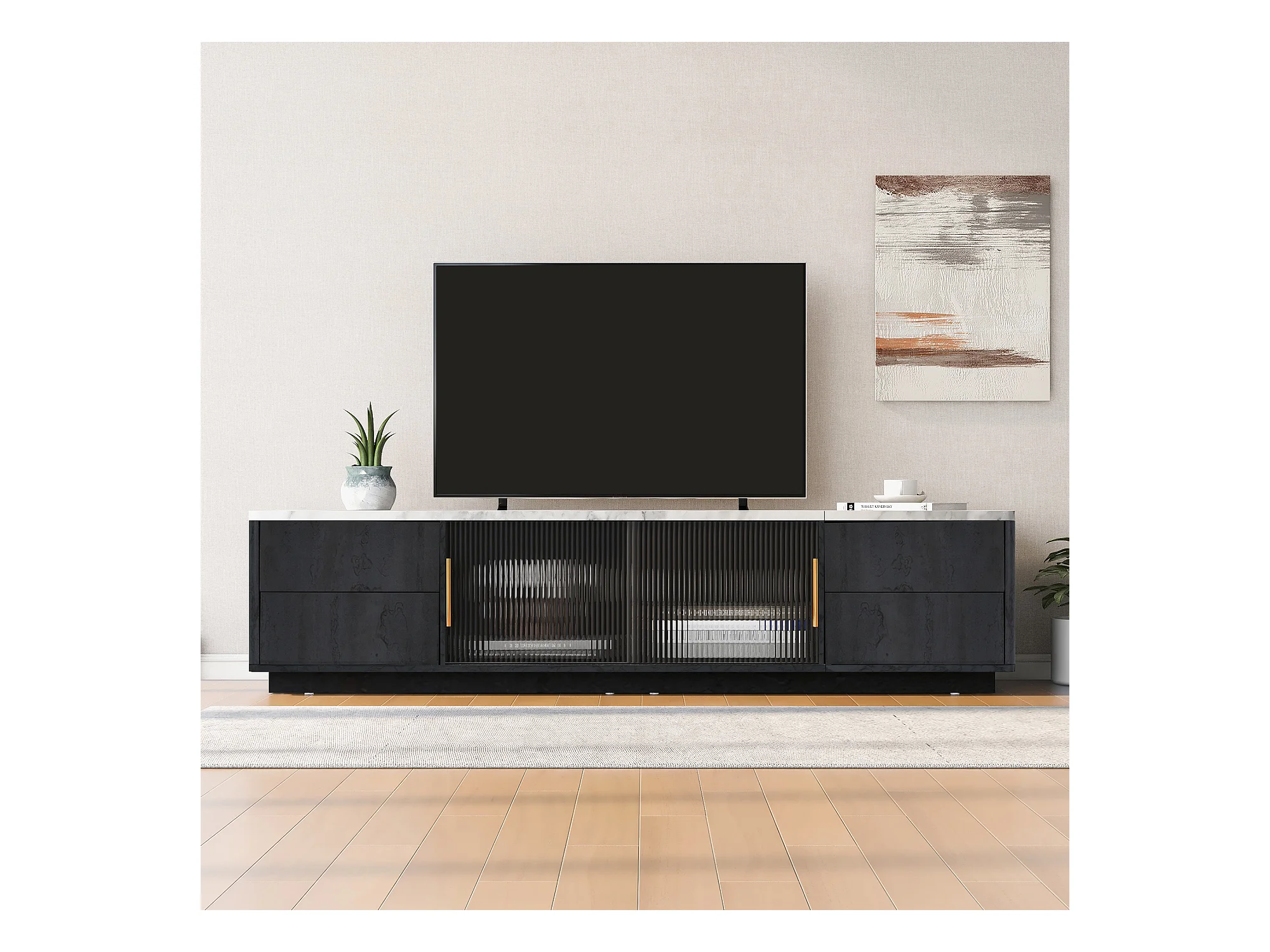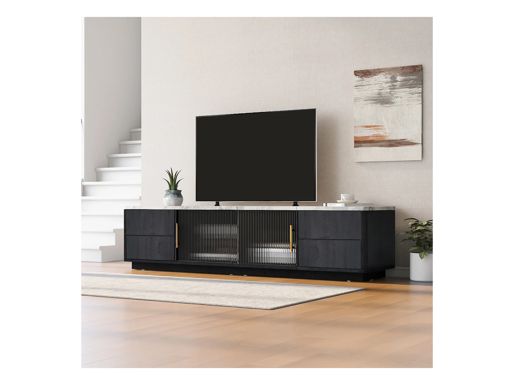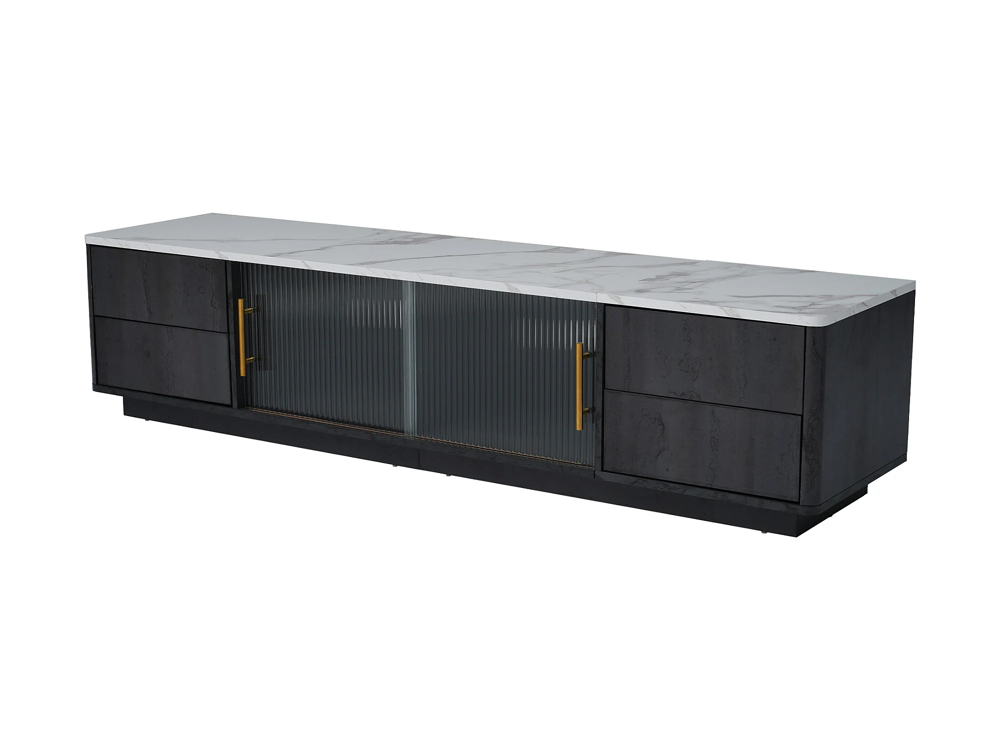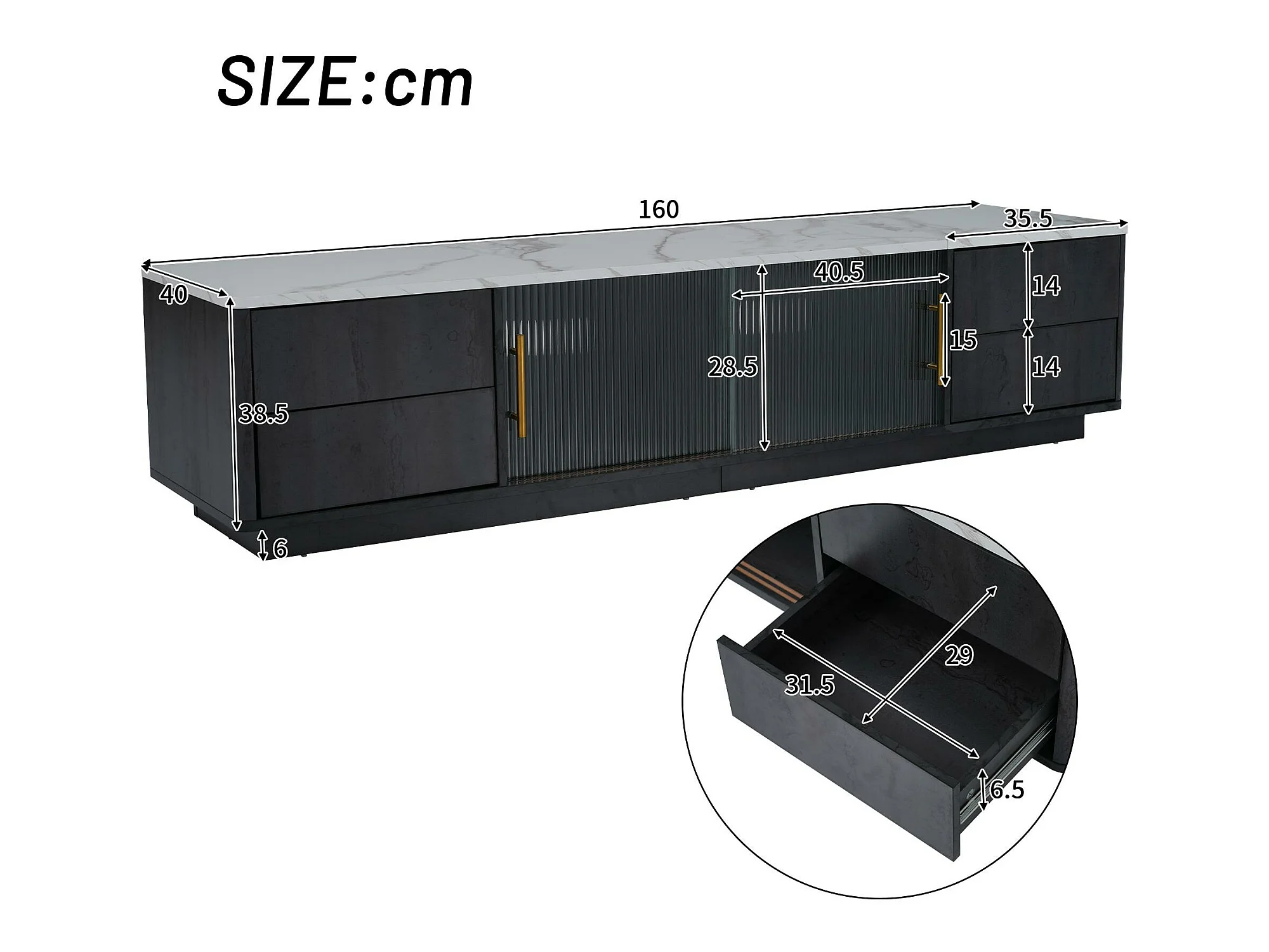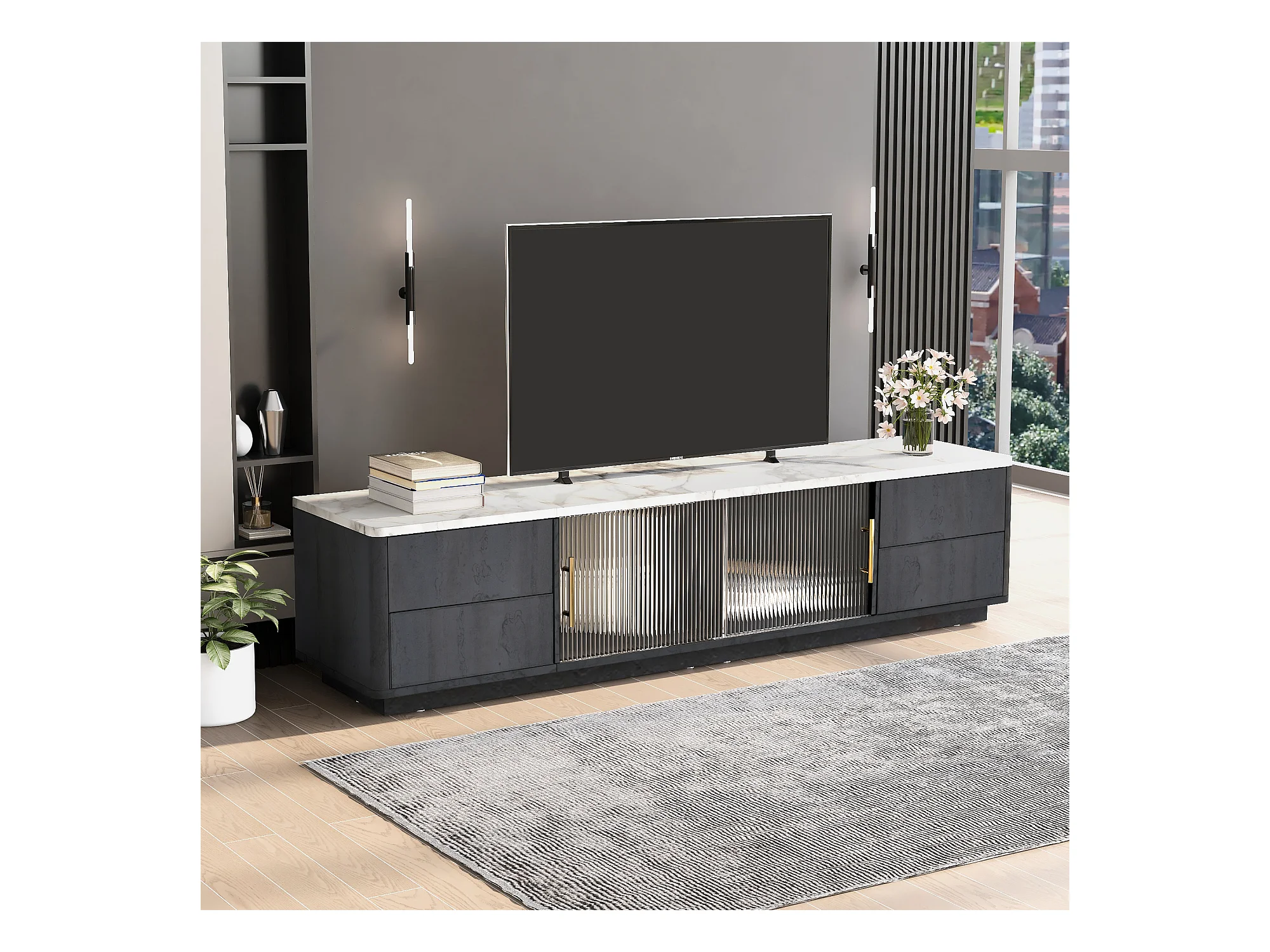Meuble TV 160cm - adapté pour TV 70" avec un grand espace de rangement et plateau effet marbre - Gris