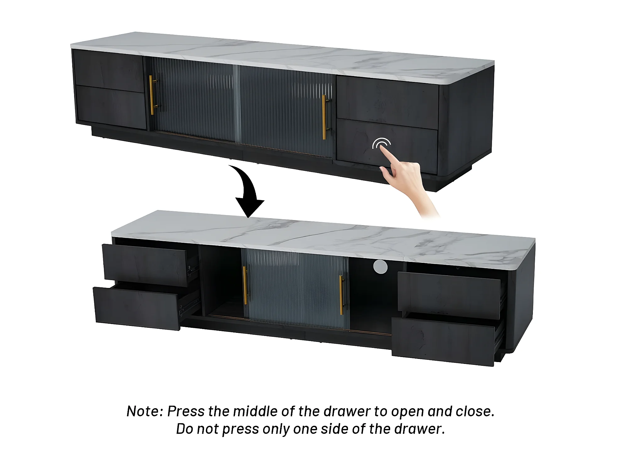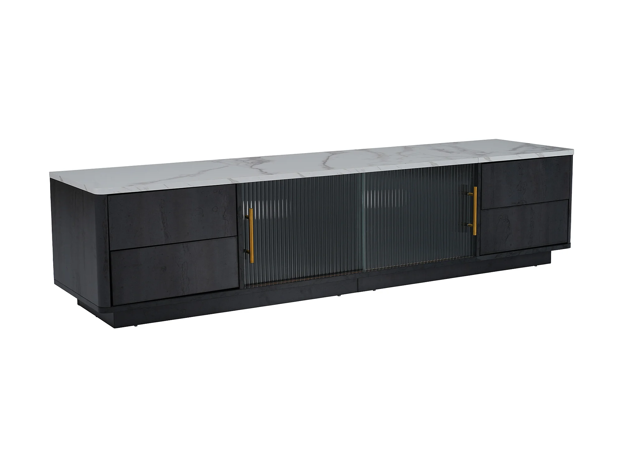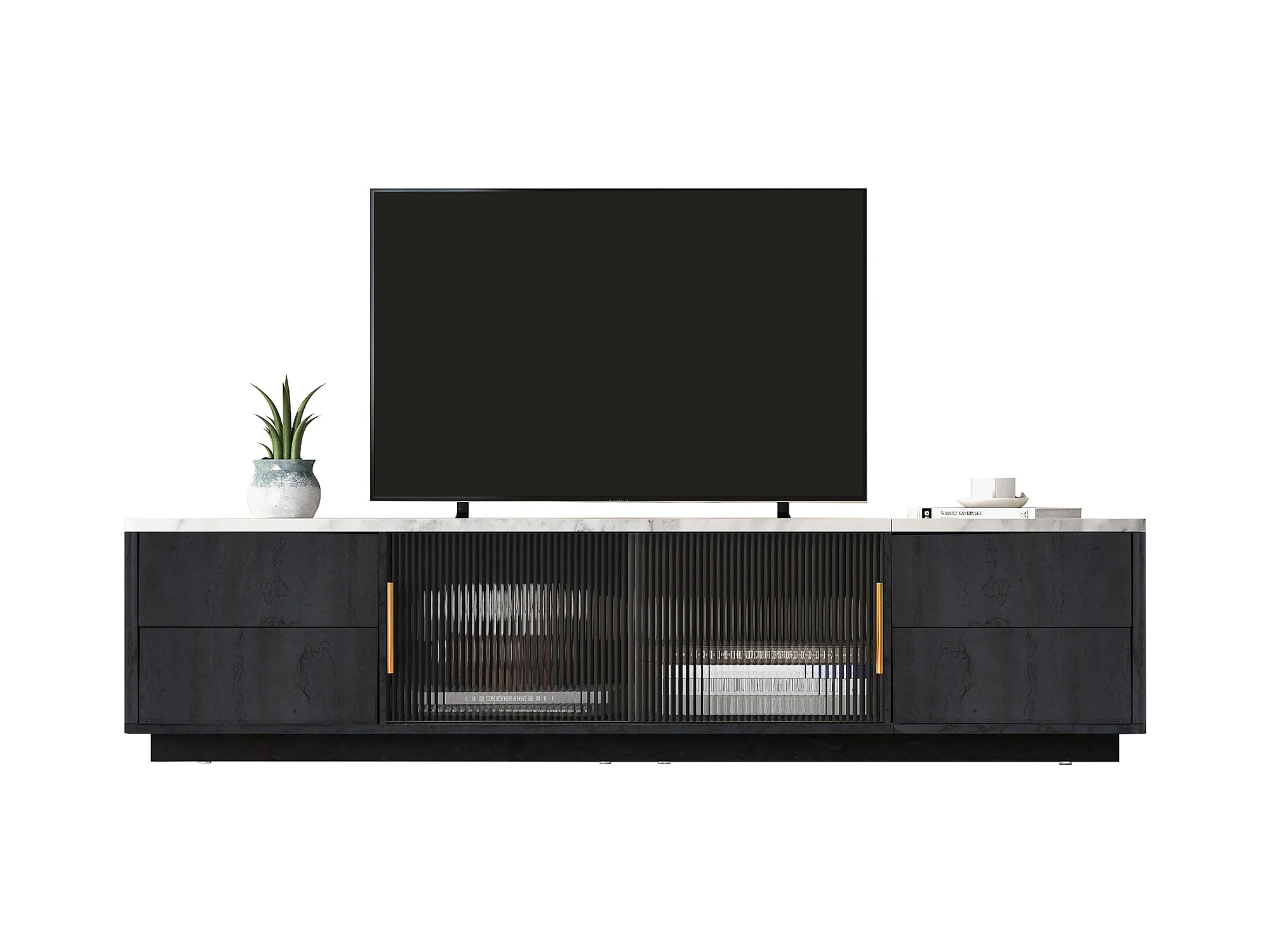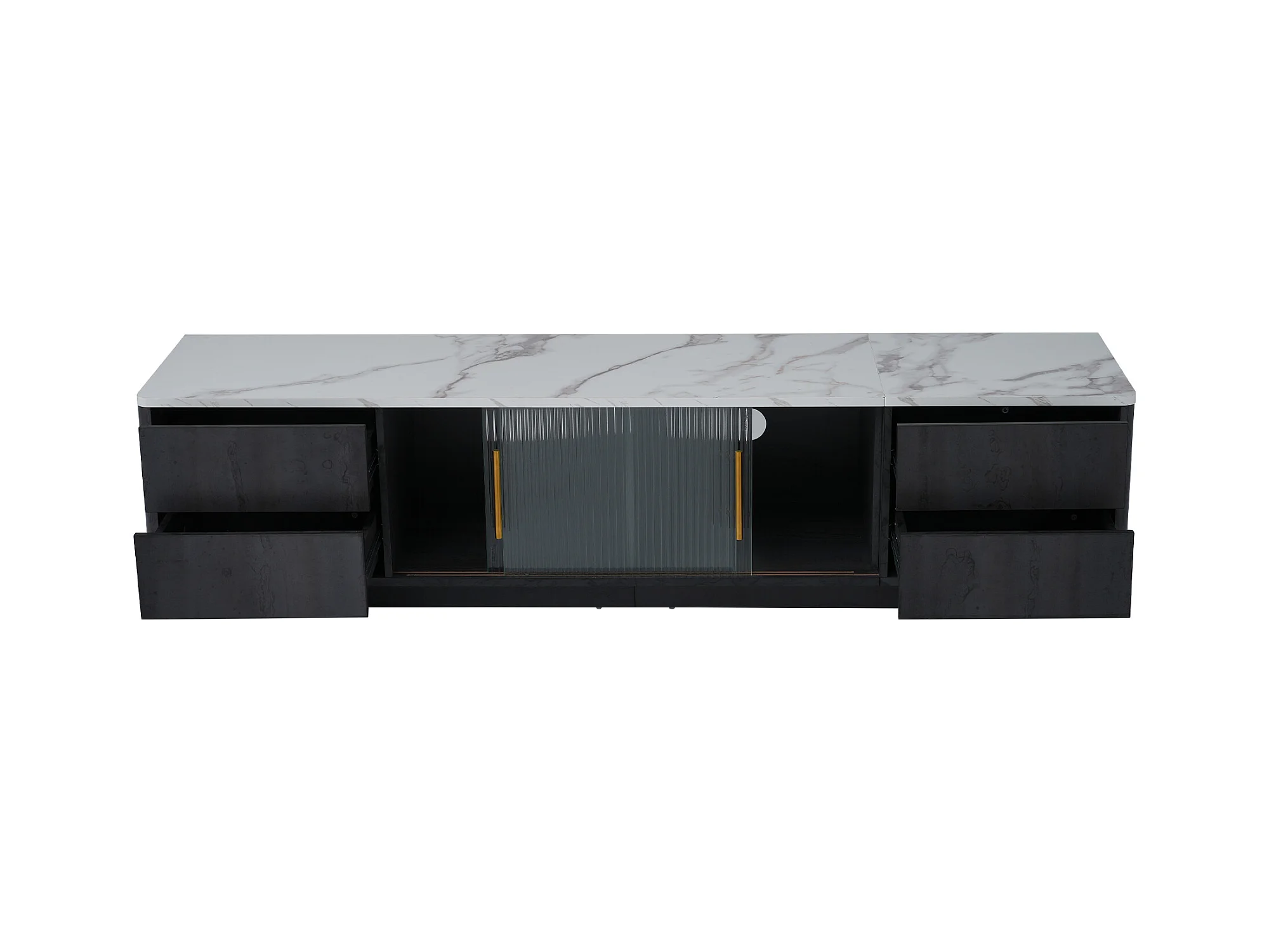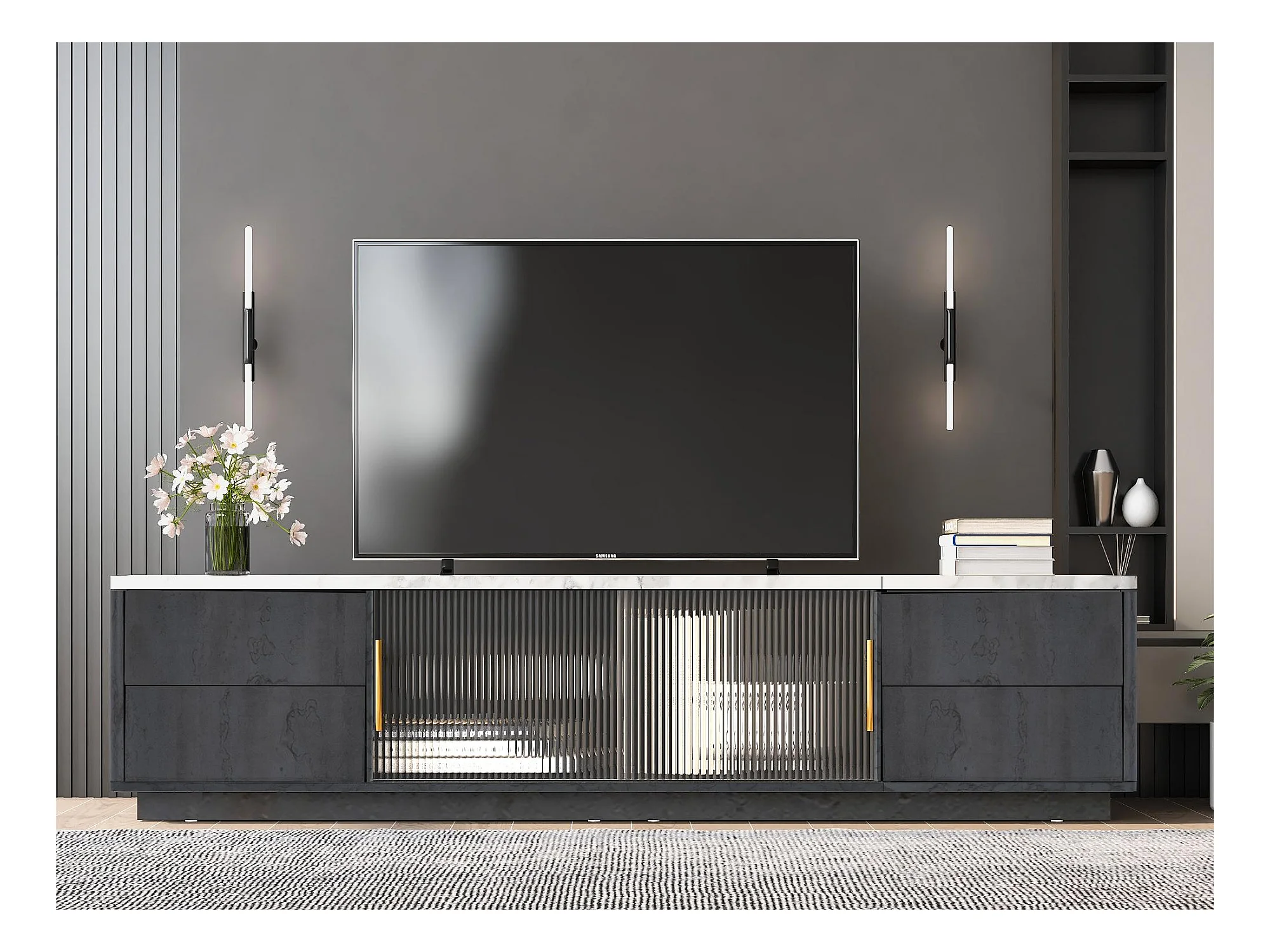 Meuble TV 160cm - adapté pour TV 70" avec un grand espace de rangement et plateau effet marbre - Gris