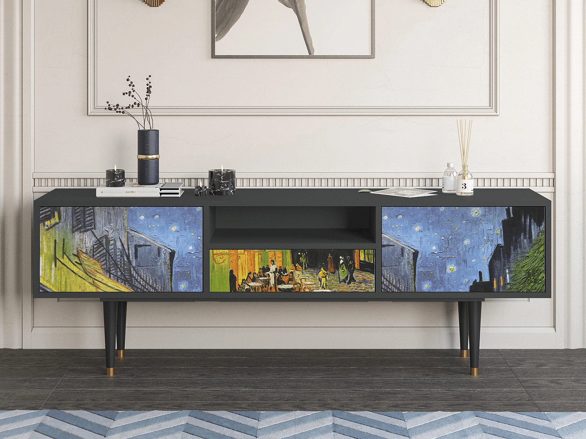 Meuble TV - 170х59х41 cm - T6 - Café Terrace at Night, Anthracite