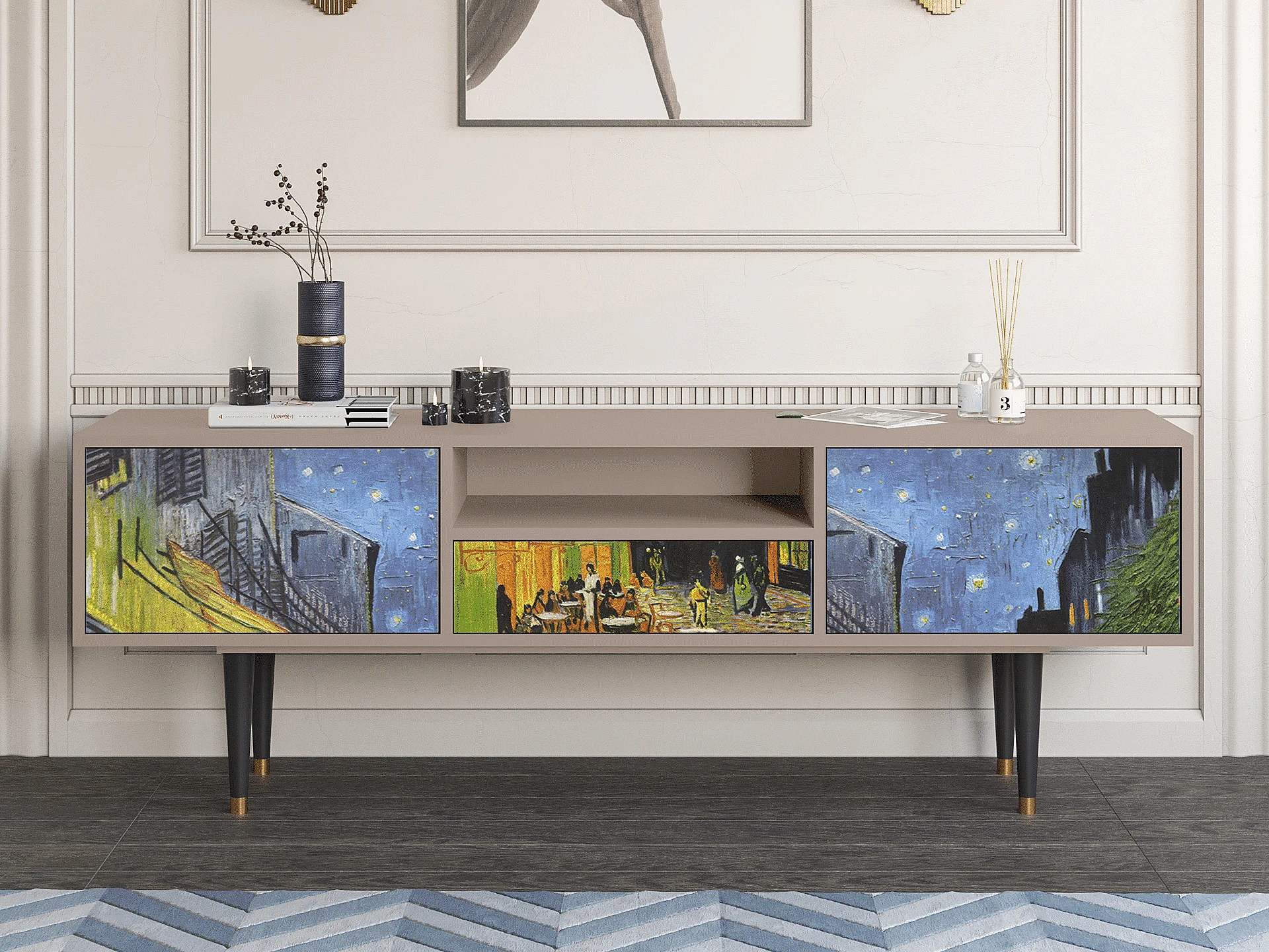 Meuble TV - 170х59х41 cm - T6 - Café Terrace at Night, Latte