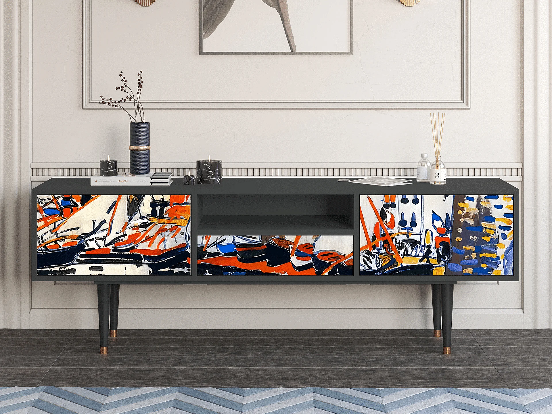 Meuble TV - 170х59х41 cm - T6 - Le Séchage des voiles , Anthracite