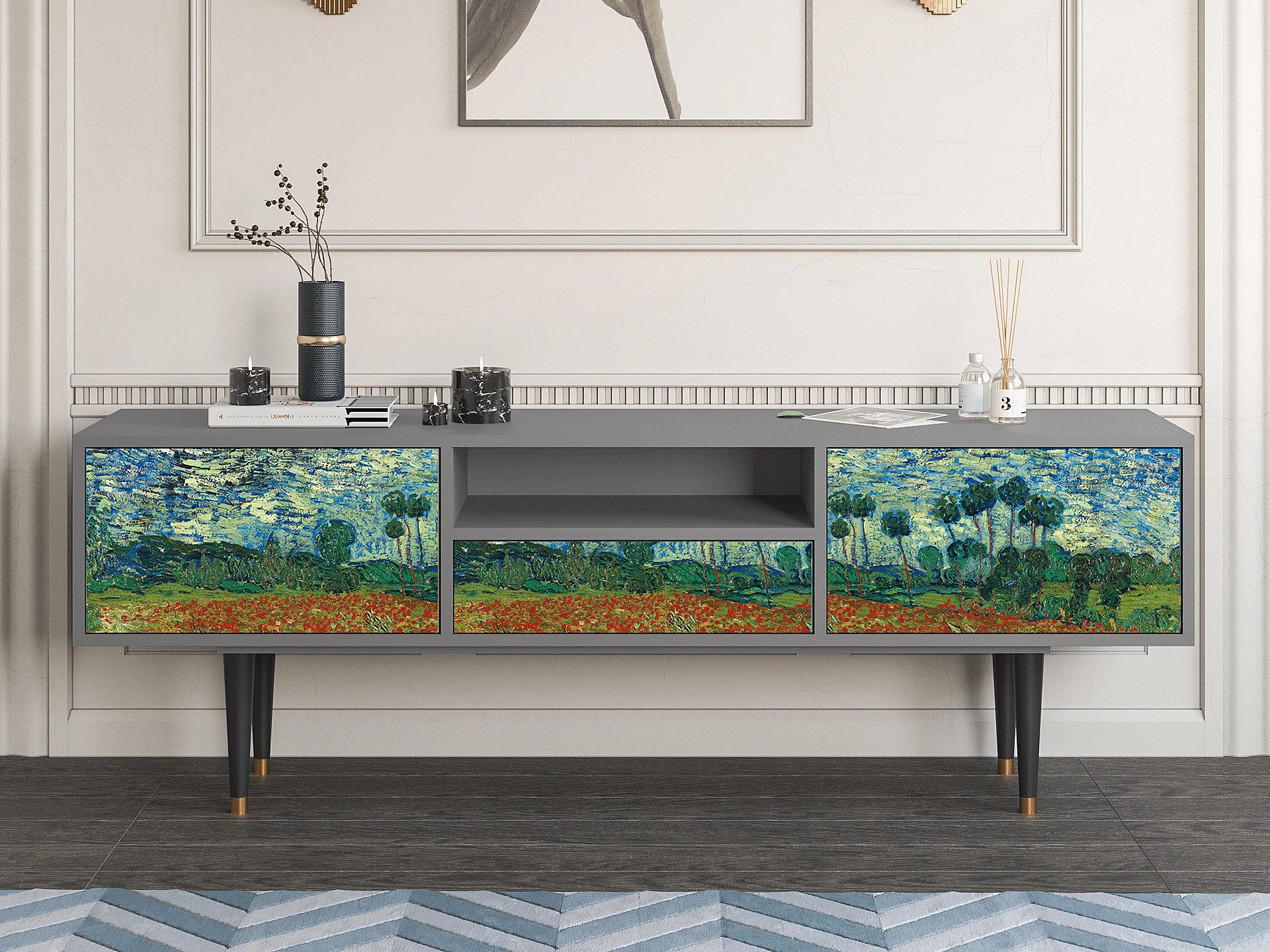 Meuble TV - 170х59х41 cm - T6 - Poppy field by van Gogh, Gris