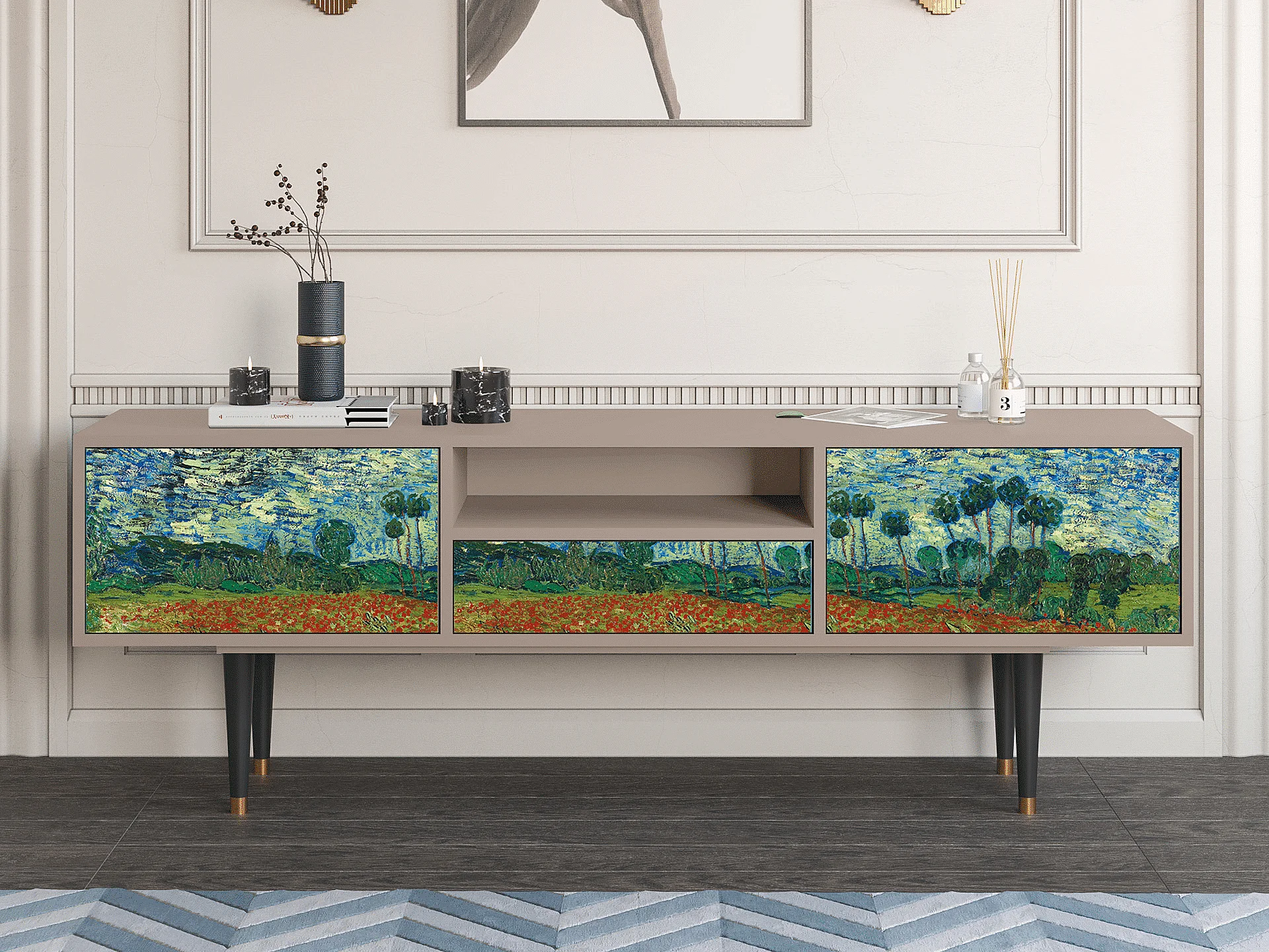 Meuble TV - 170х59х41 cm - T6 - Poppy field by van Gogh, Latte