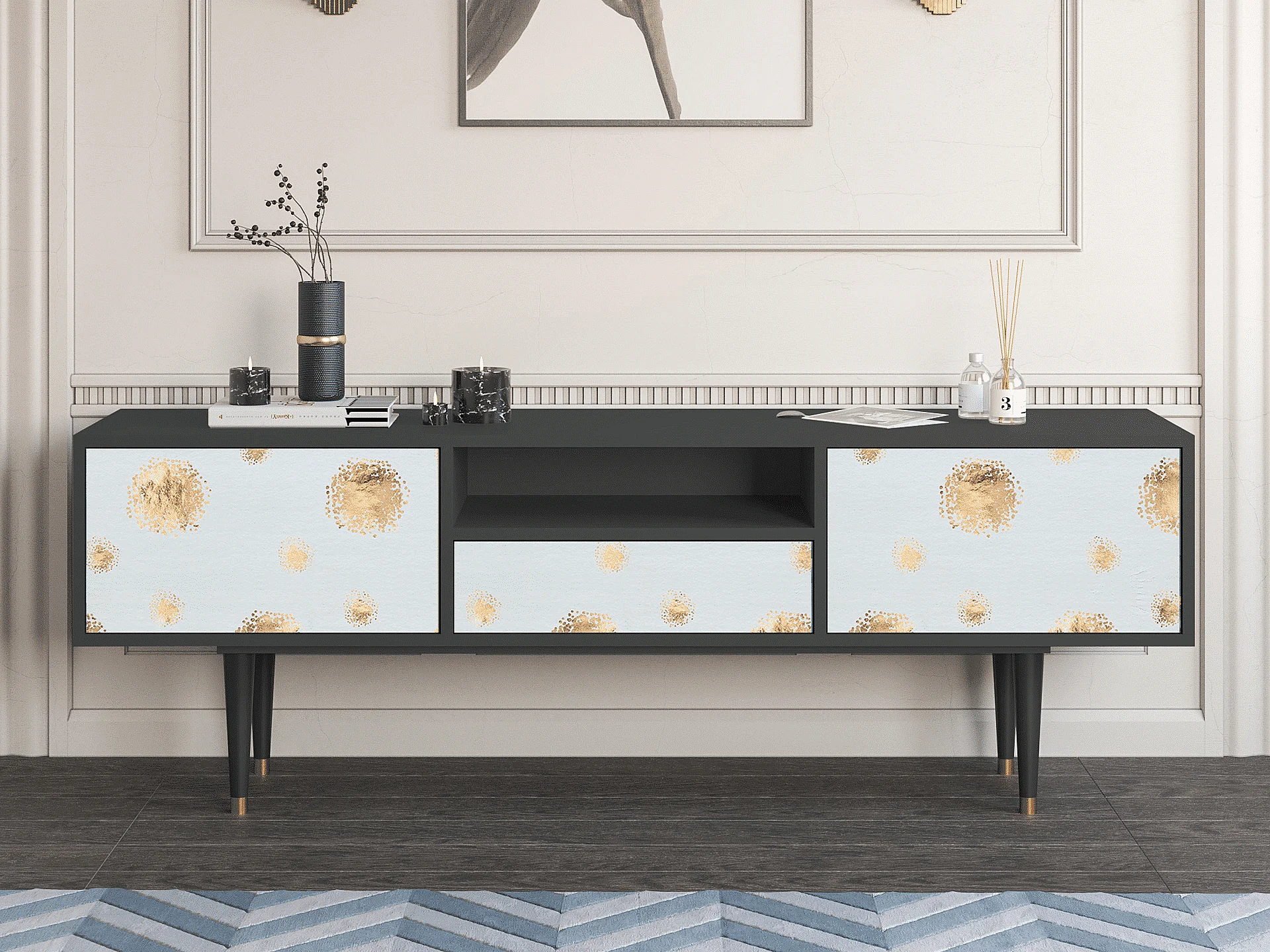 Meuble TV - 170х59х41 cm - T6 - Sky Latte, Anthracite