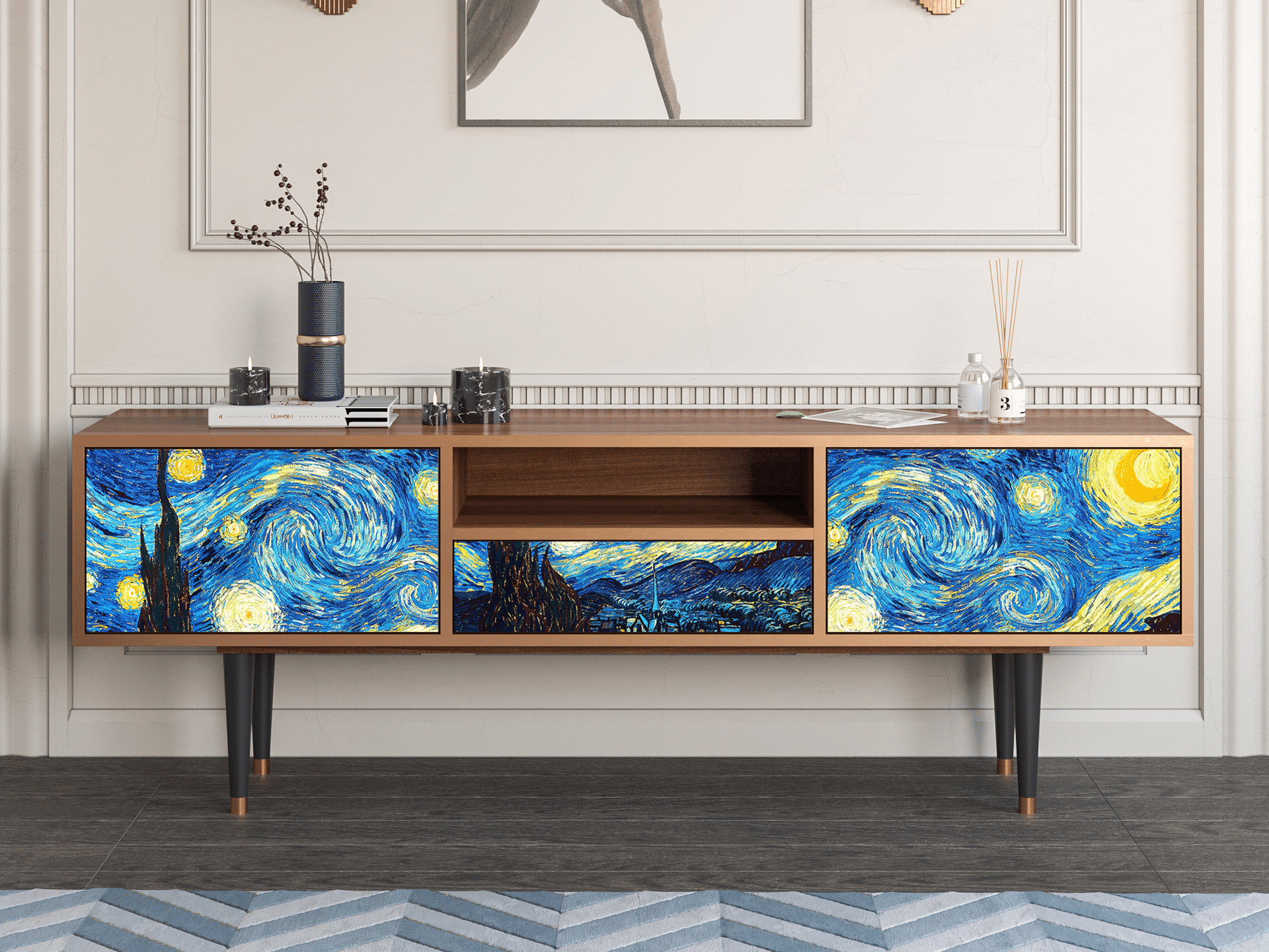 Meuble TV - 170х59х41 cm - T6 - The Starry Night , Noyer