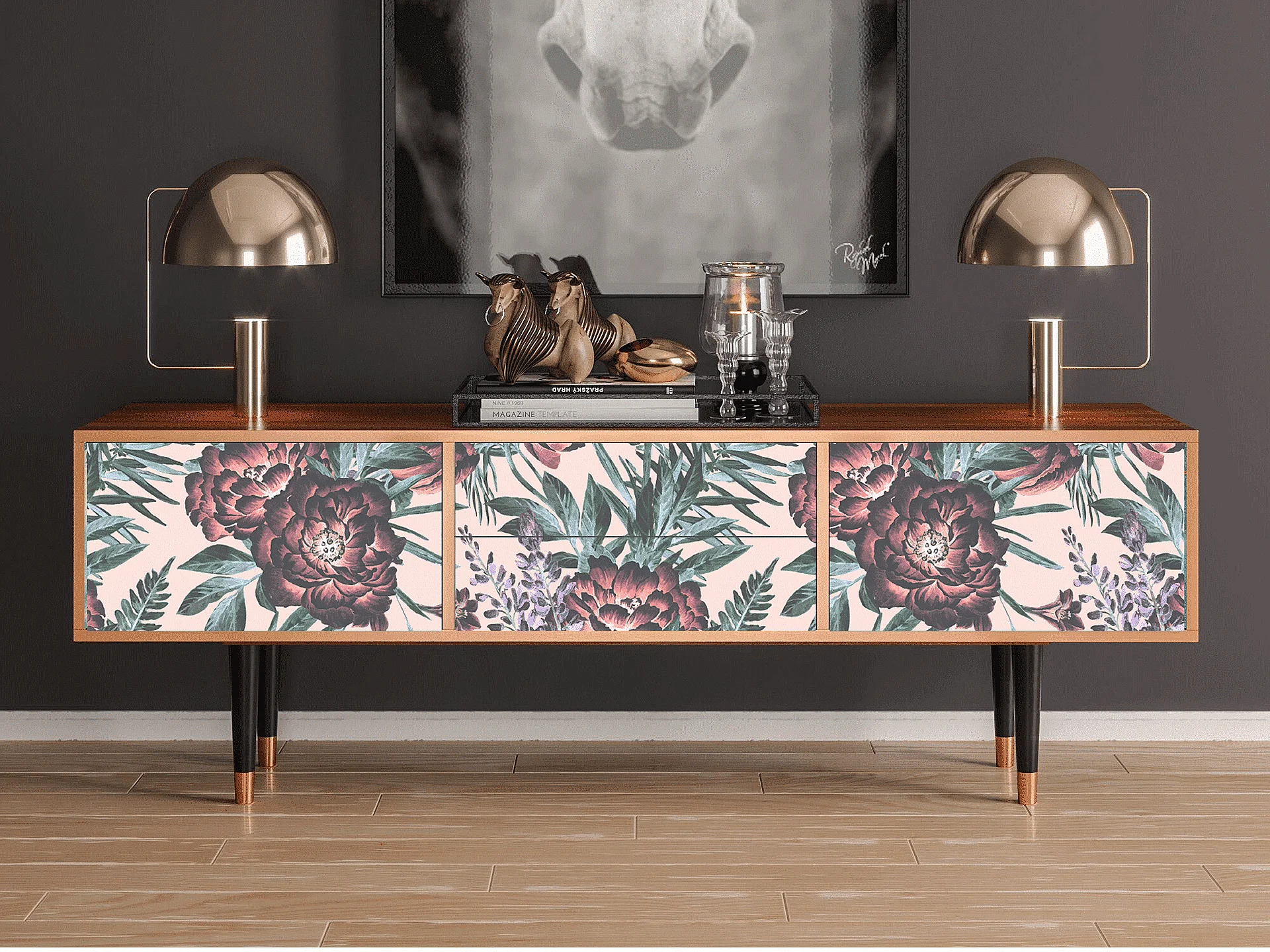 Meuble TV - 170х59х48 cm - T4 - Peach Peonies, Noyer