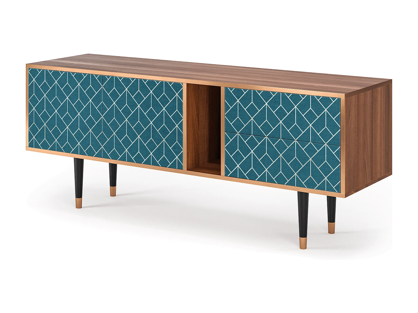 Meuble TV - 170х69х48 cm - T1 - Turquoise Geometry, Noyer
