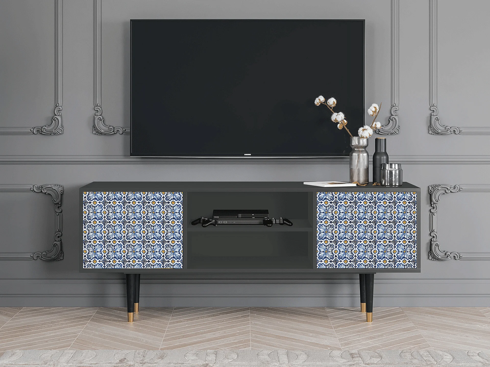 Meuble TV - 170х69х48 cm - T2 - Lovely Cornflowers, Anthracite