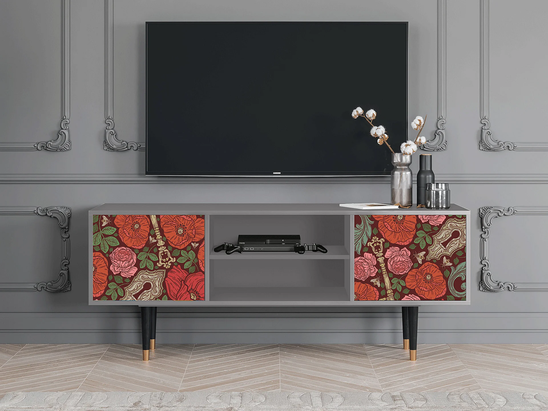 Meuble TV - 170х69х48 cm - T2 - Poppy Garden, Gris