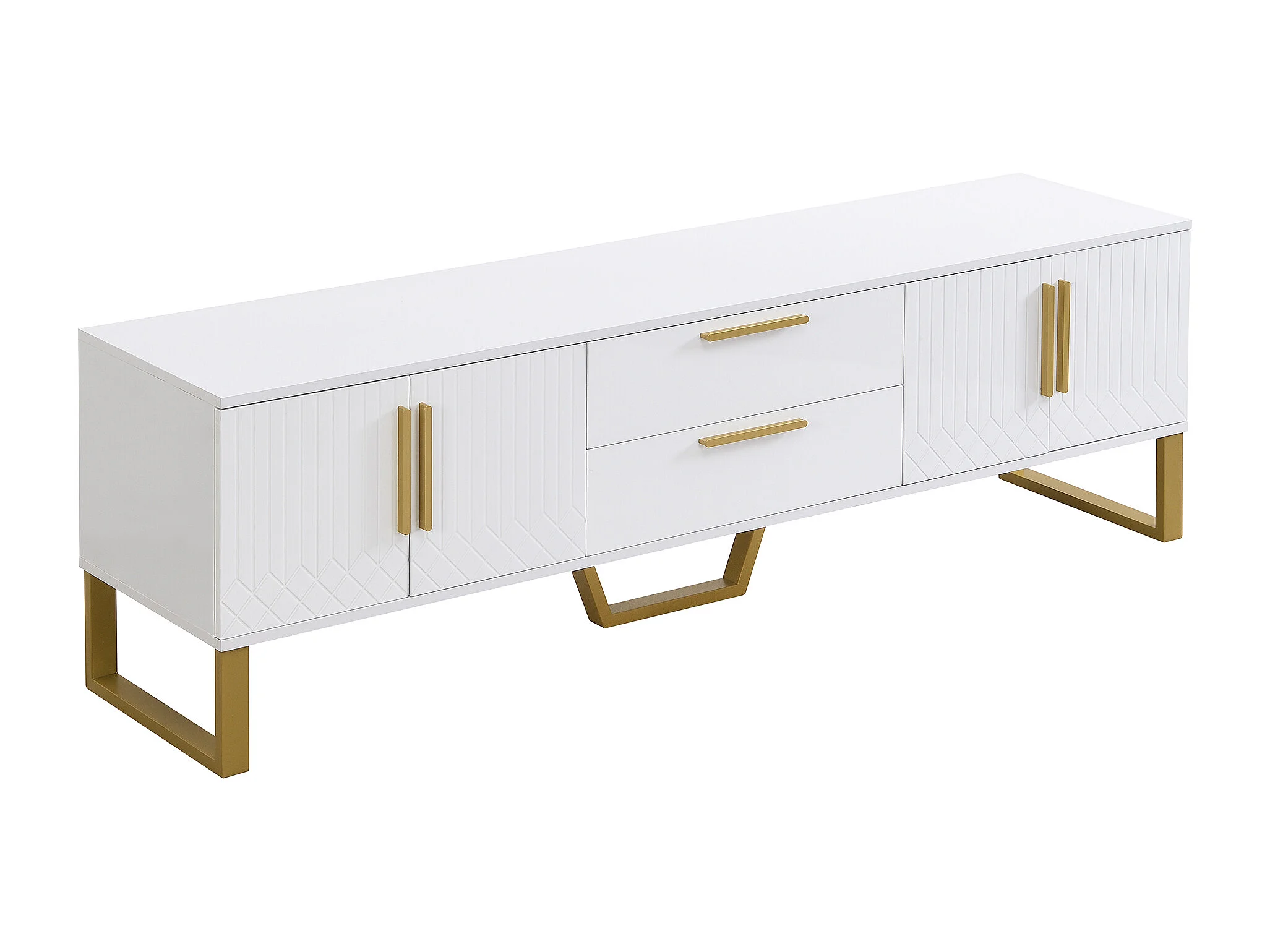 Meuble TV 170x40x53.5 cm, 4 portes et 2 tiroirs, passe câbles, MDF, blanc