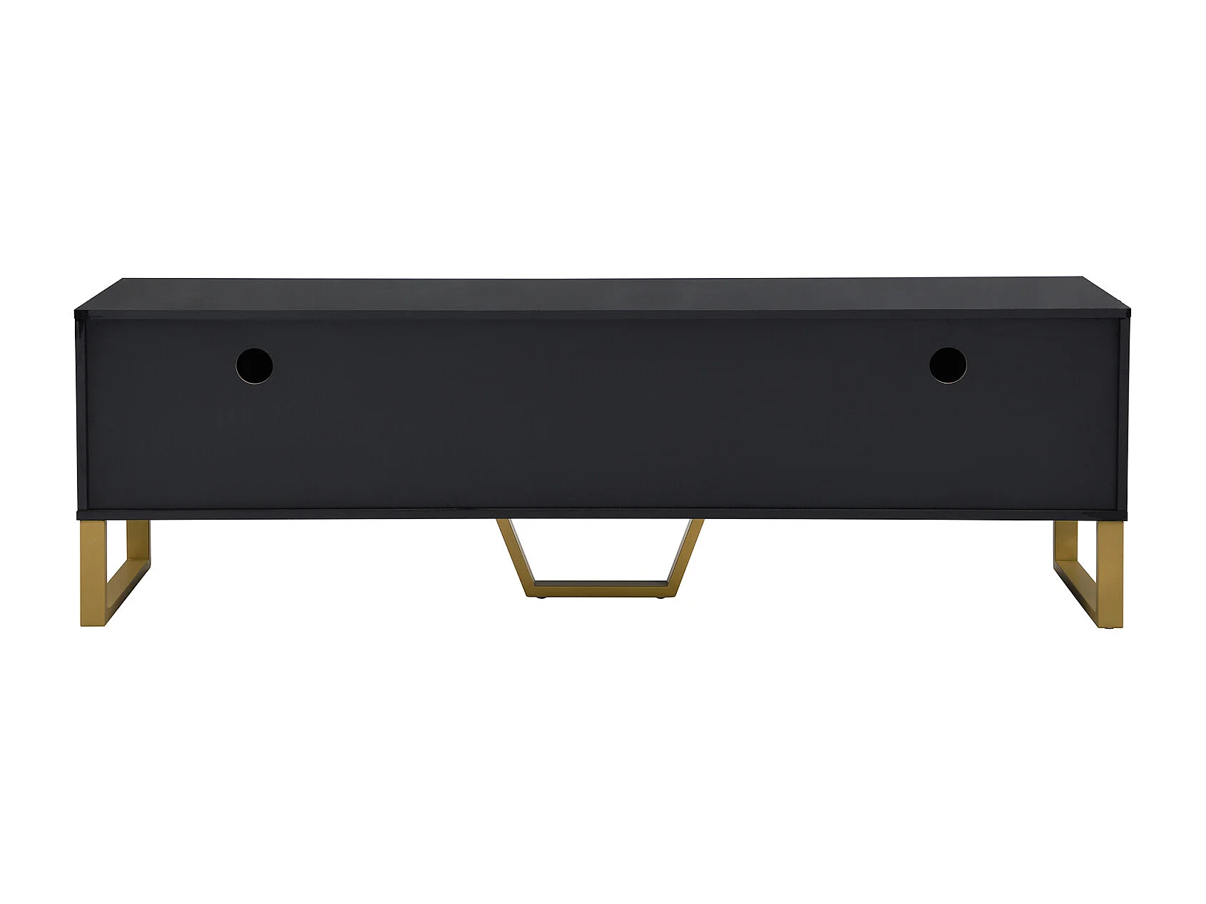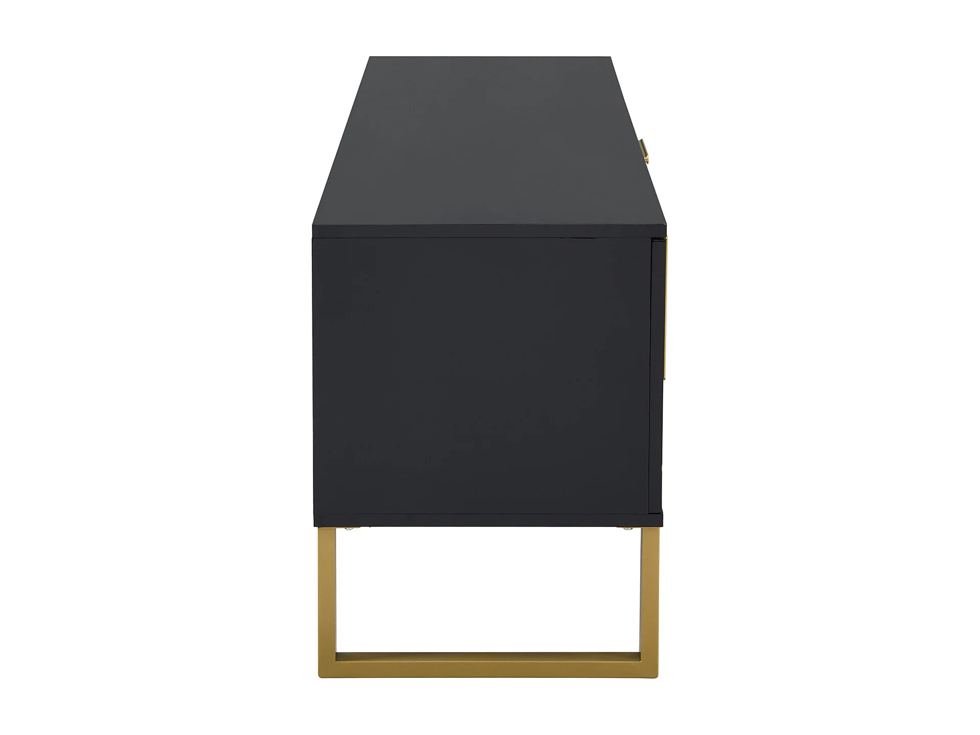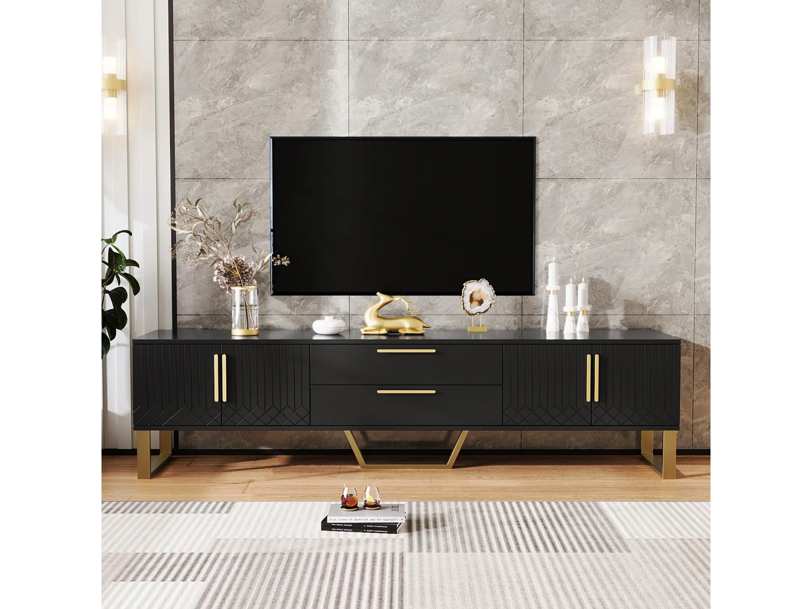 Meuble TV 170x40x53cm, en MDF, avec 4 portes design texture gravée, 2 tiroirs, luxe, élégante, noir