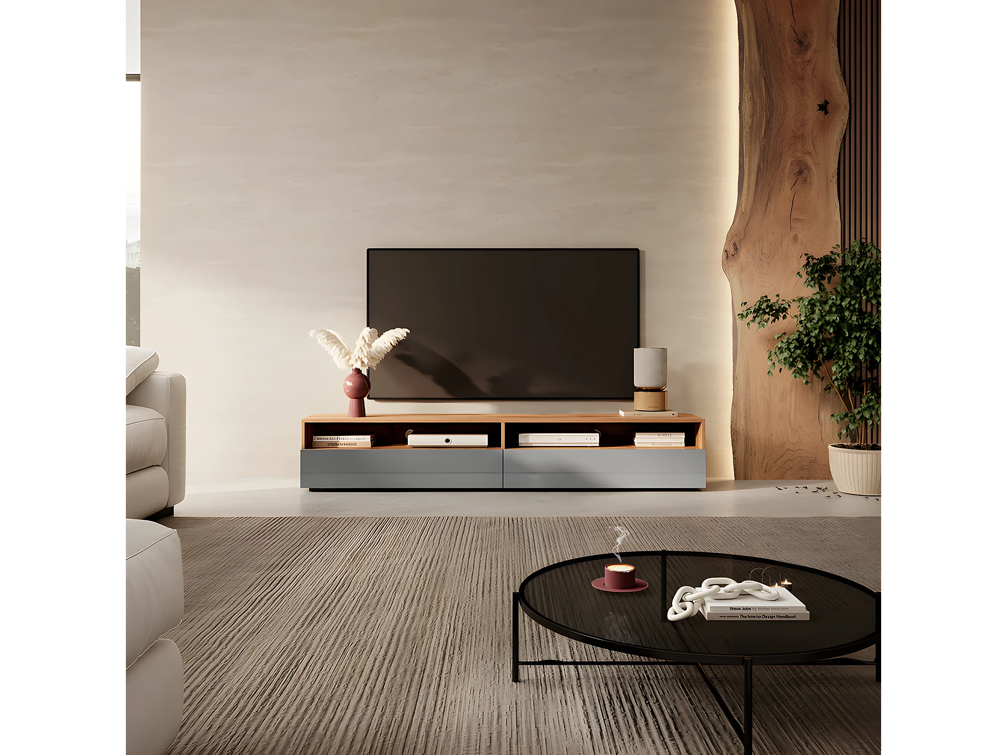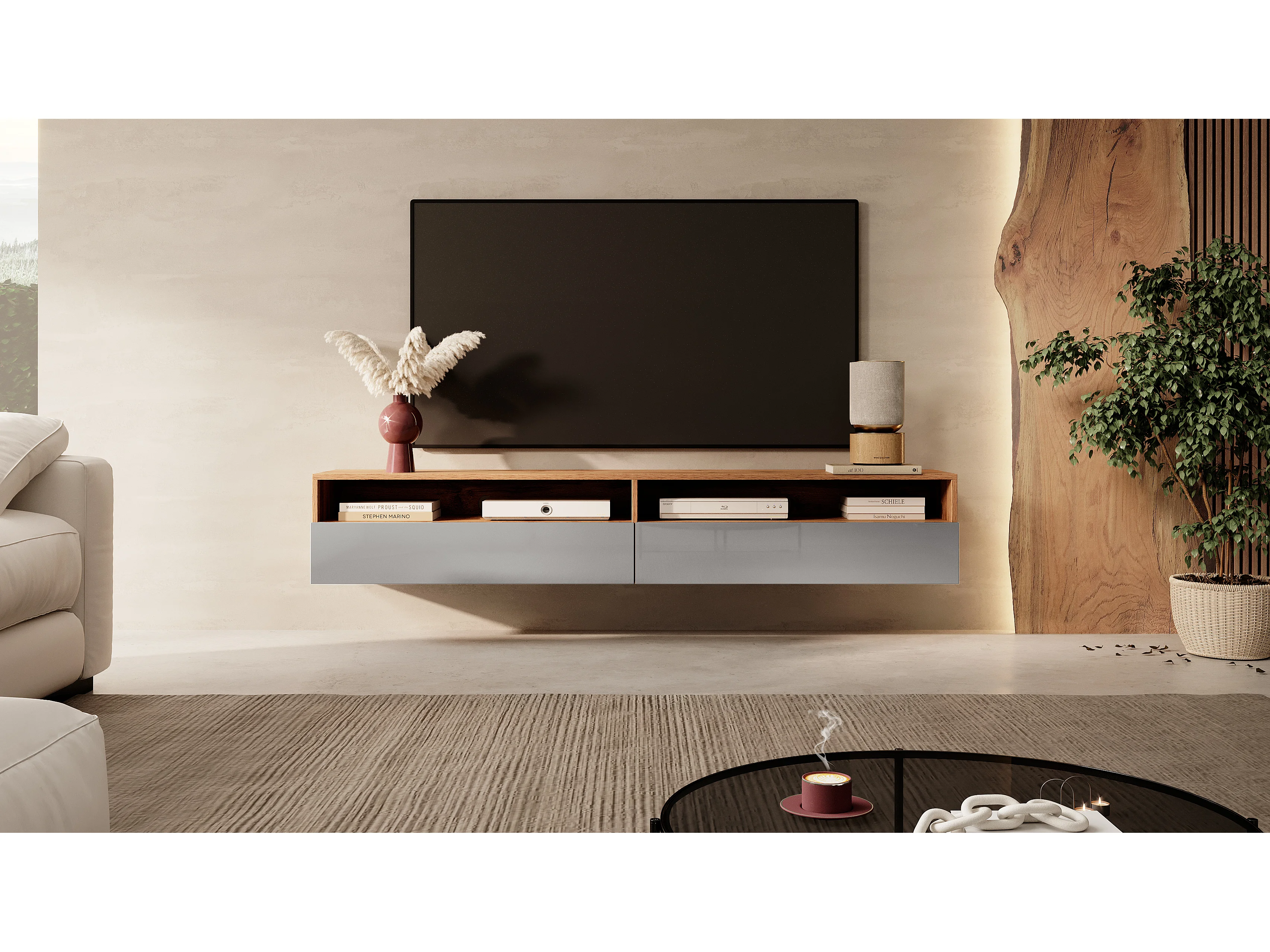 Meuble TV - 180 cm - chêne wotan / gris brillant - REDNAW