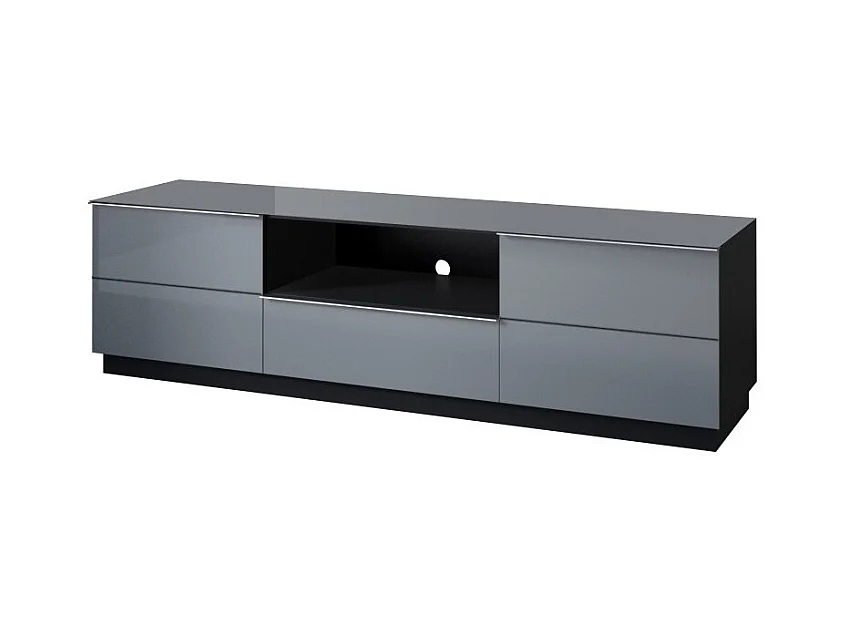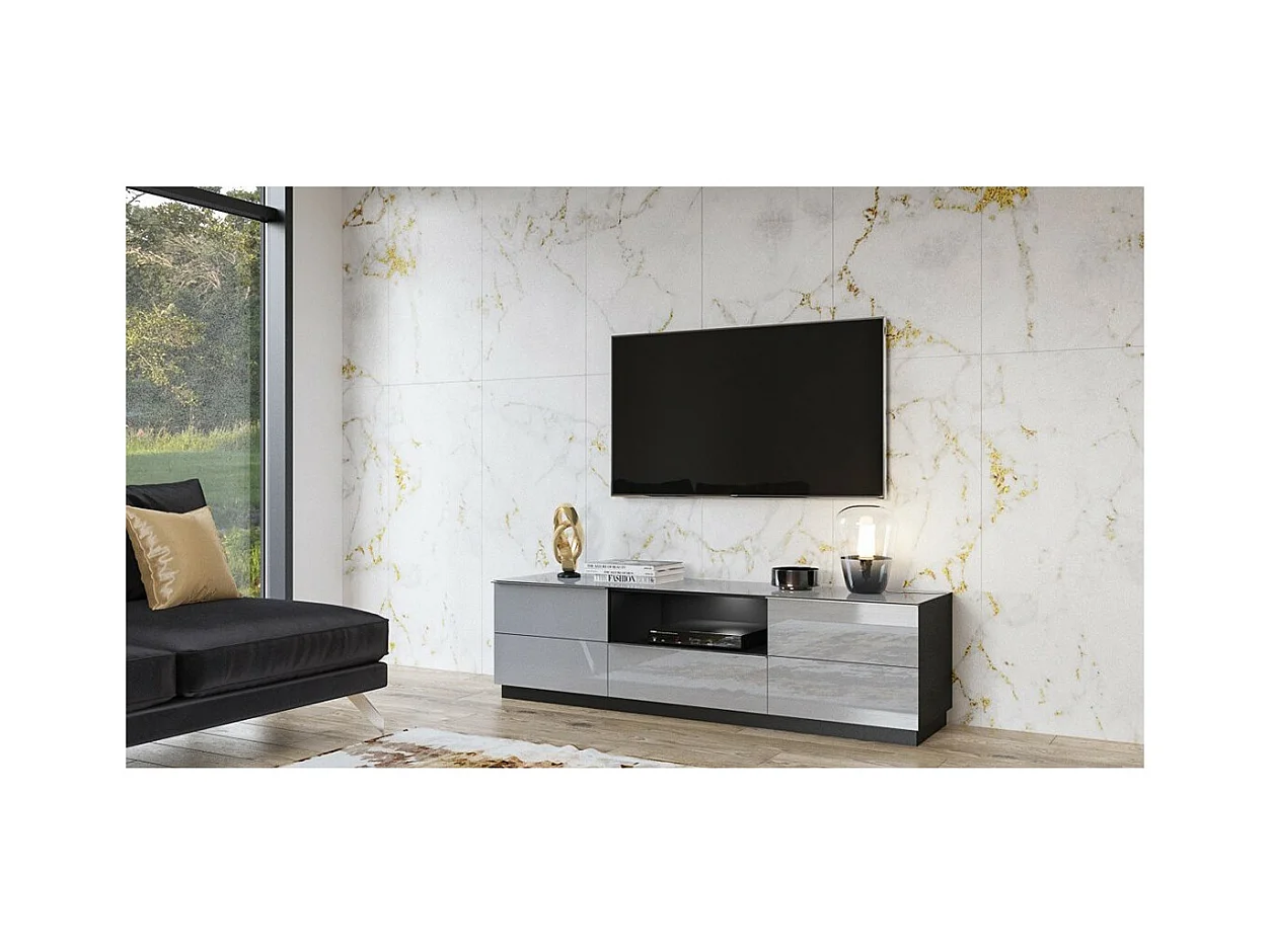 Meuble TV 180cm collection ZANTE avec 2 portes et 1 tiroir. LED incluses. Couleur noir et gris brillant.