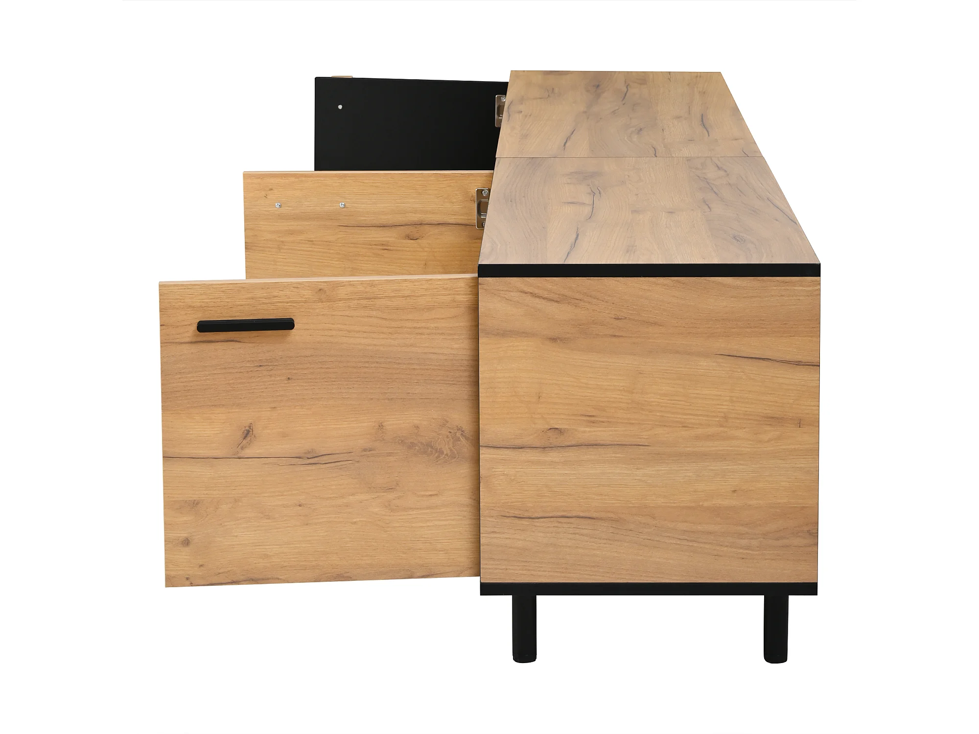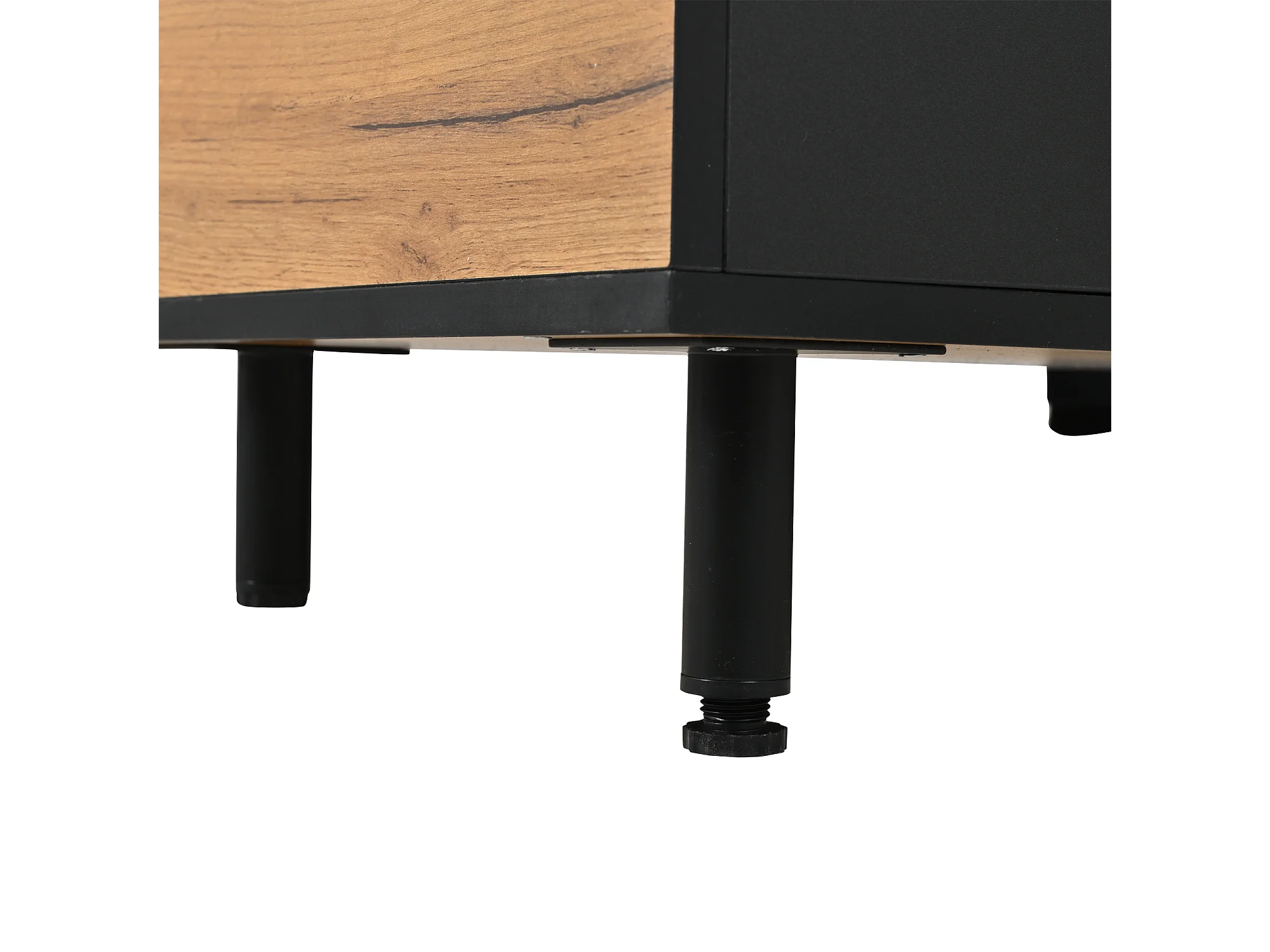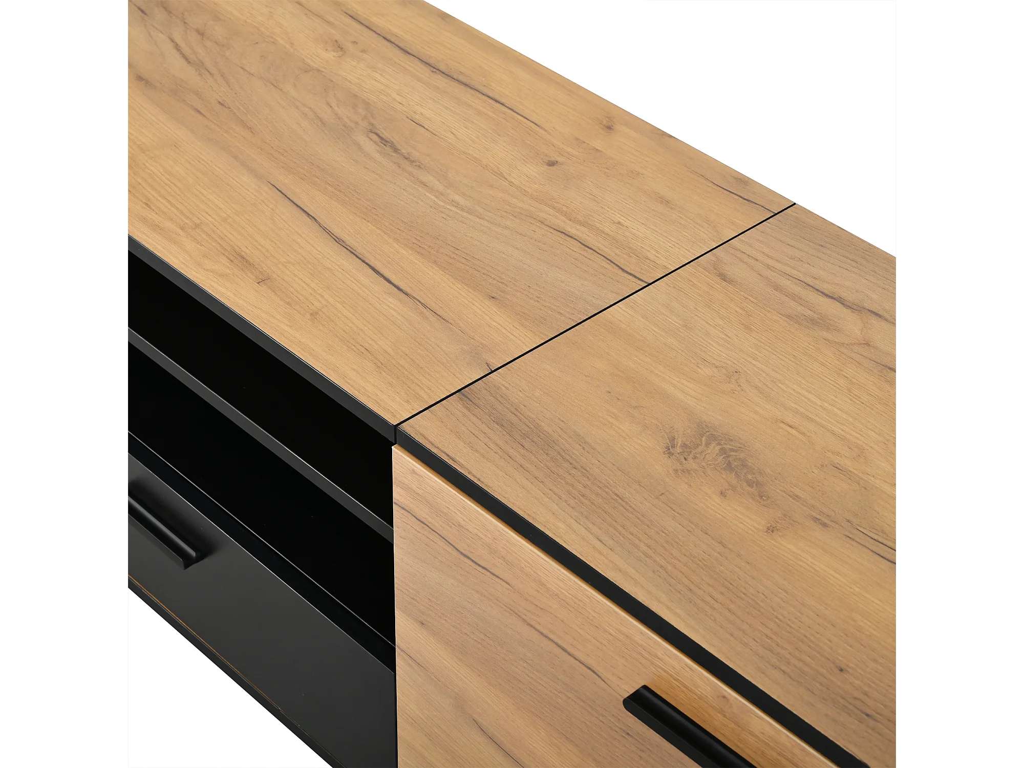 Meuble TV 180x32,5x50 cm avec 3 portes et tiroir - Couleur bois et noir