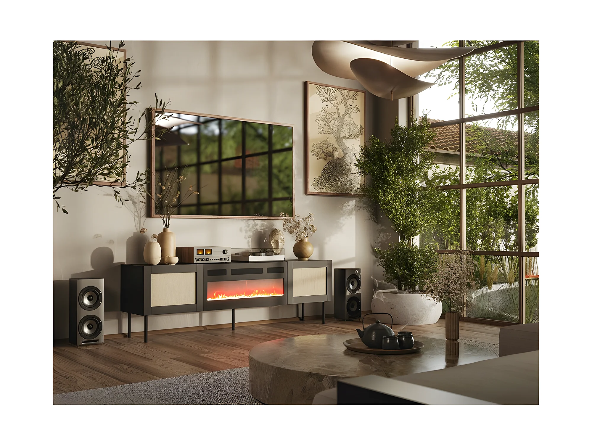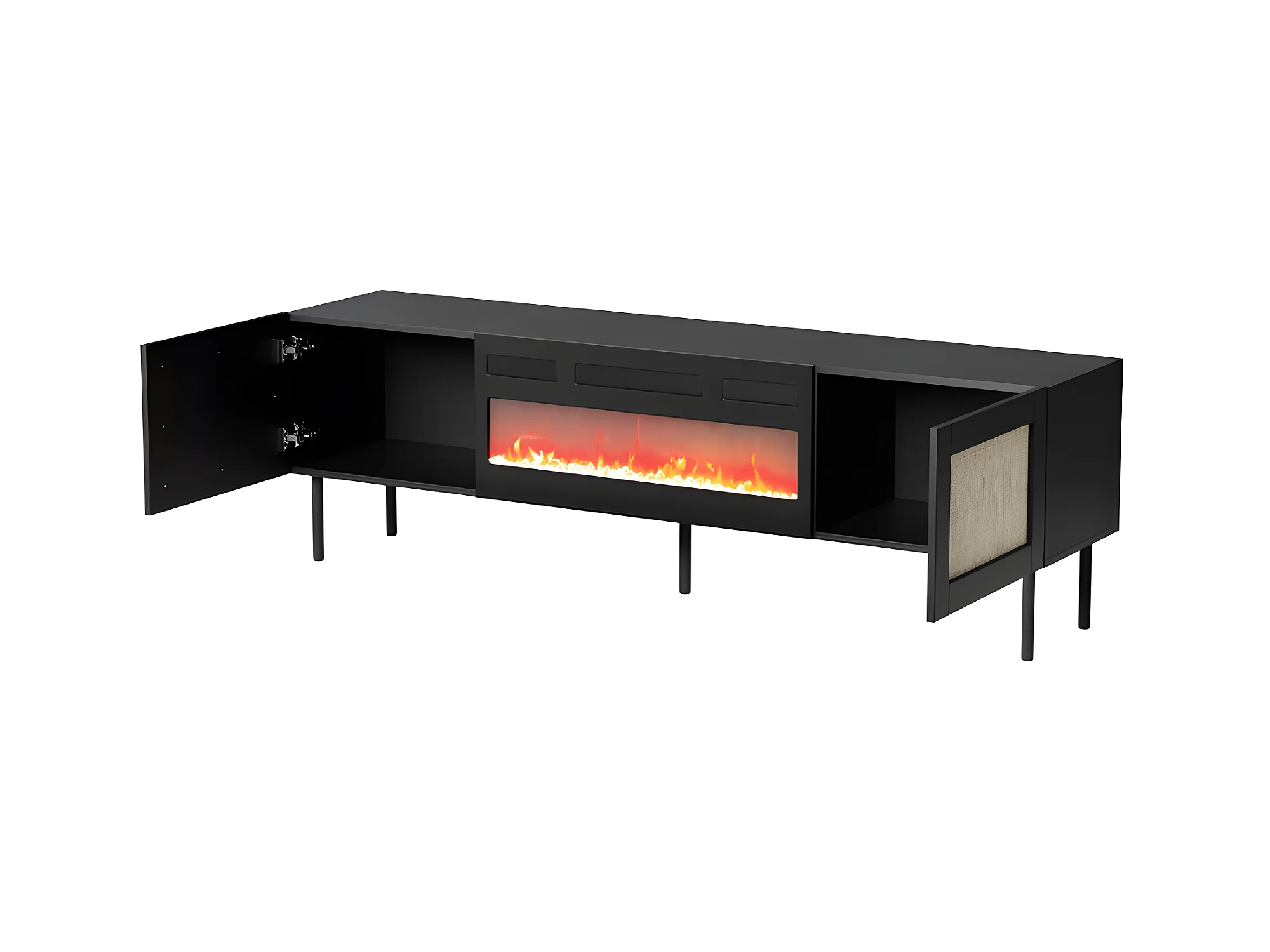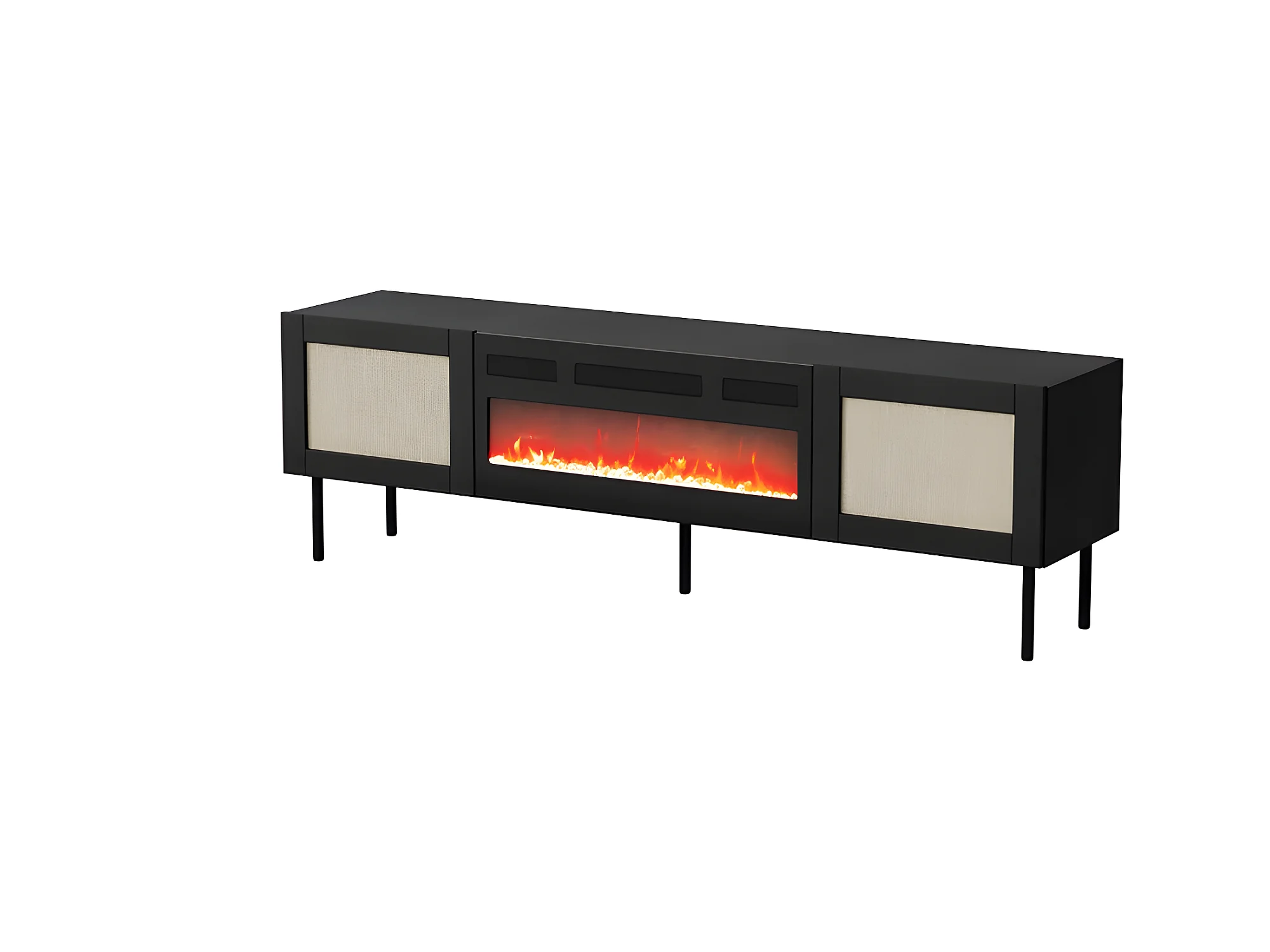 Meuble TV 180x55x40 cm NOIR YOTA avec cheminée intégrée meuble Hi-fi sur pied